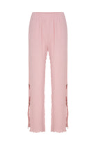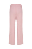 Biye Detaylı Kırışık Dokulu Pembe Pantolon