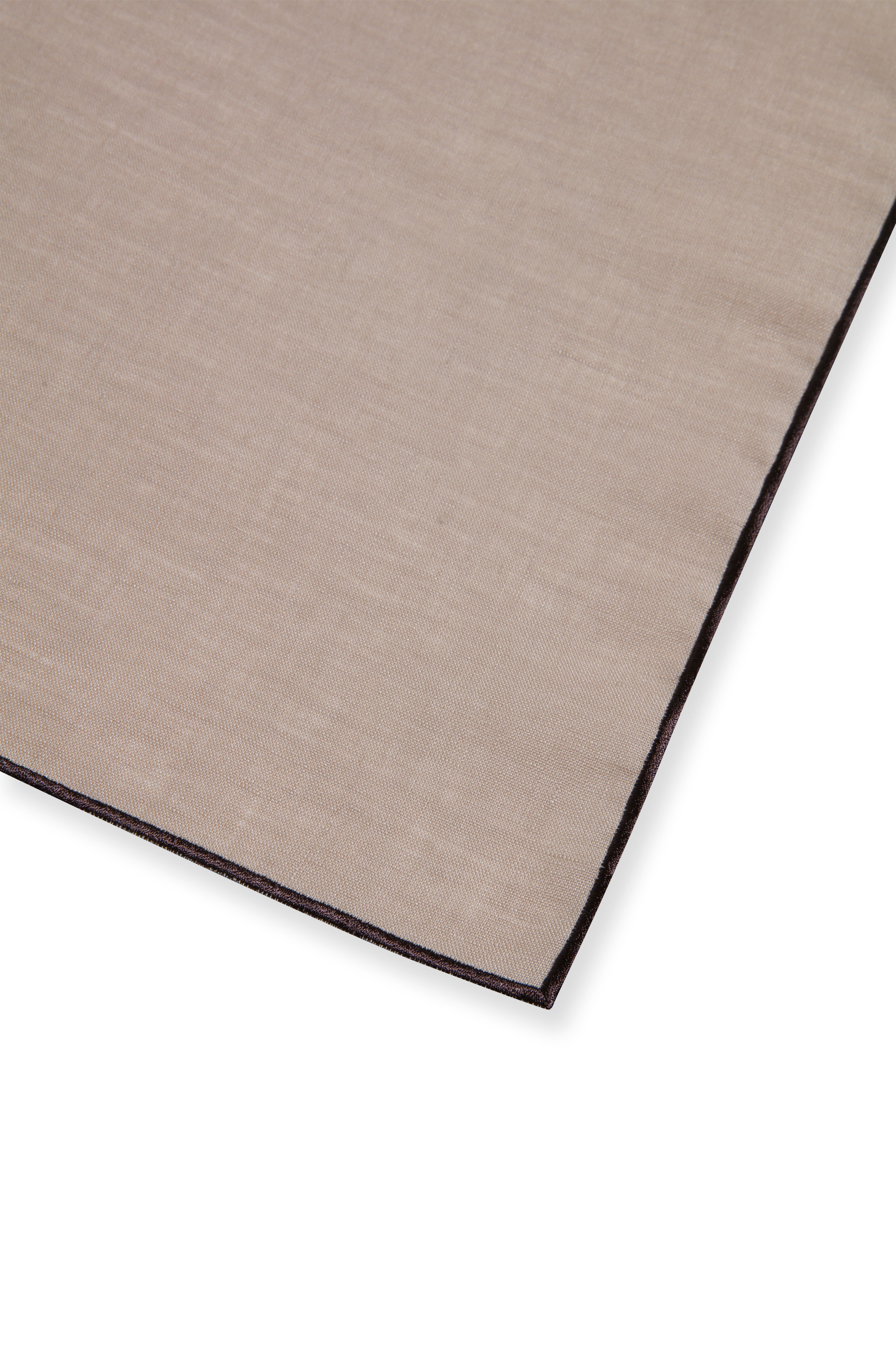 Margot Amerikan Servis, boz kahverengi tonlarında keten kumaştan üretilmiş olup kenarları kahverengi biye detayıyla tamamlanmıştır. Katmanlı sofra düzenleri için ideal bir zemin oluşturarak sofraya denge ve sade bir zarafet kazandırır.