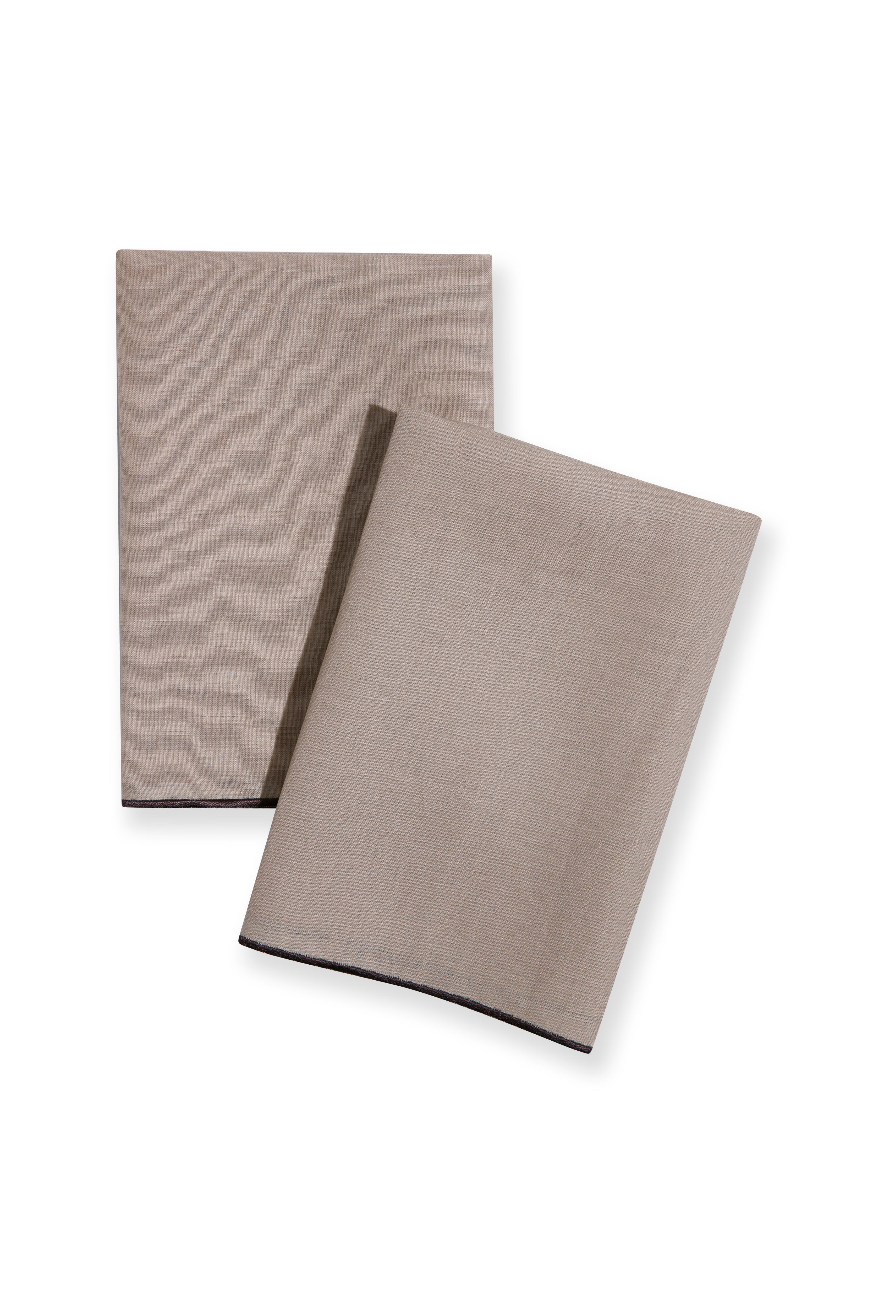Margot Peçete, boz kahverengi tonlarında keten kumaştan üretilmiş olup kenarlarını çevreleyen zarif kahverengi biye detayıyla tamamlanmıştır. Tek olarak satılan bu parça, hem günlük hem de özel sofralara yumuşak ve zarif bir katman ekler.
