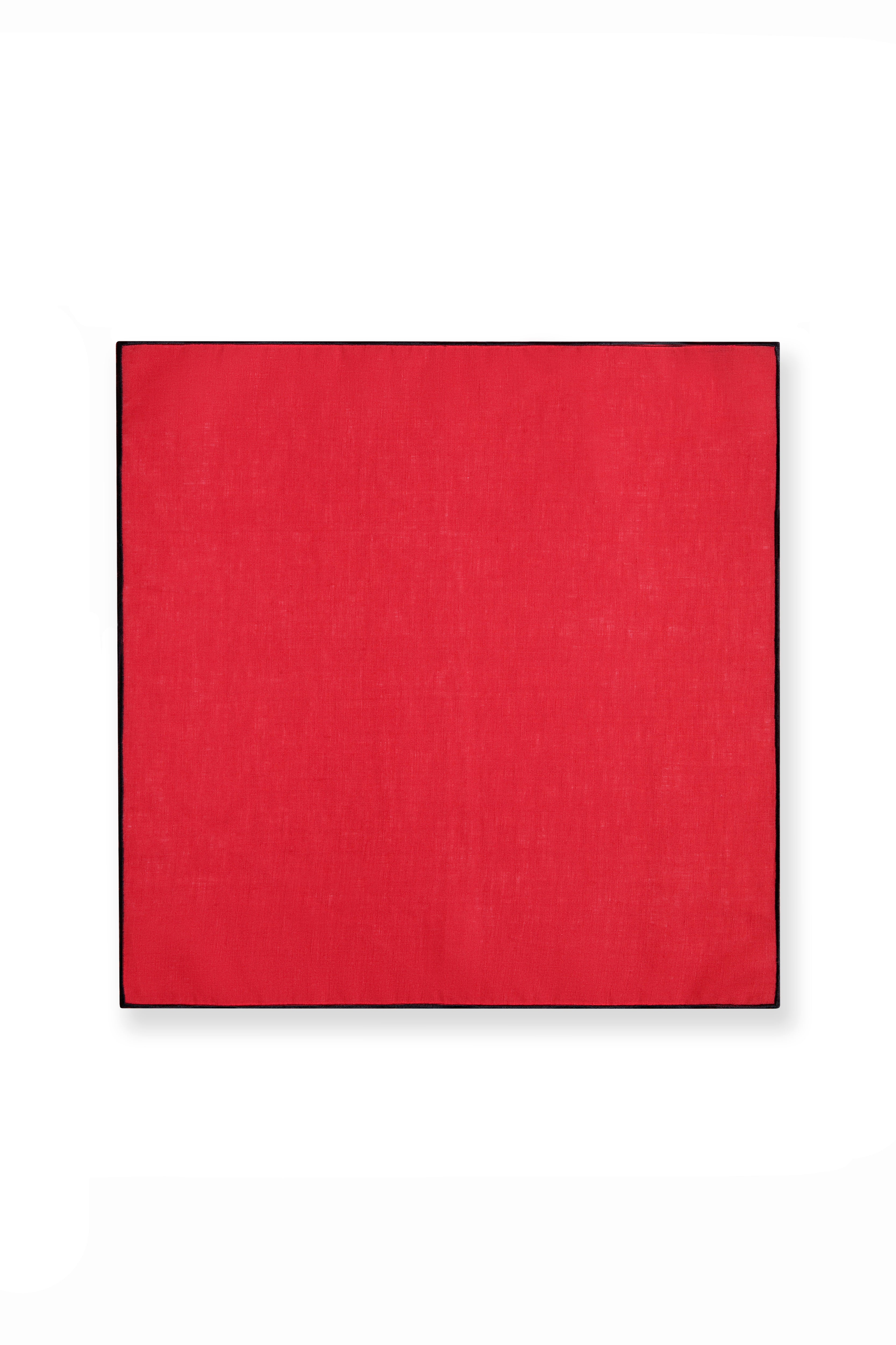 Margot Peçete, keten kumaştan üretilmiş olup dikkat çekici kırmızı tonu ve kenarlarını çevreleyen siyah biye detayıyla öne çıkar. Tek olarak satılan bu kare peçete, günlük kullanıma işlevsellik kazandırırken sofraya güçlü bir vurgu ekler.