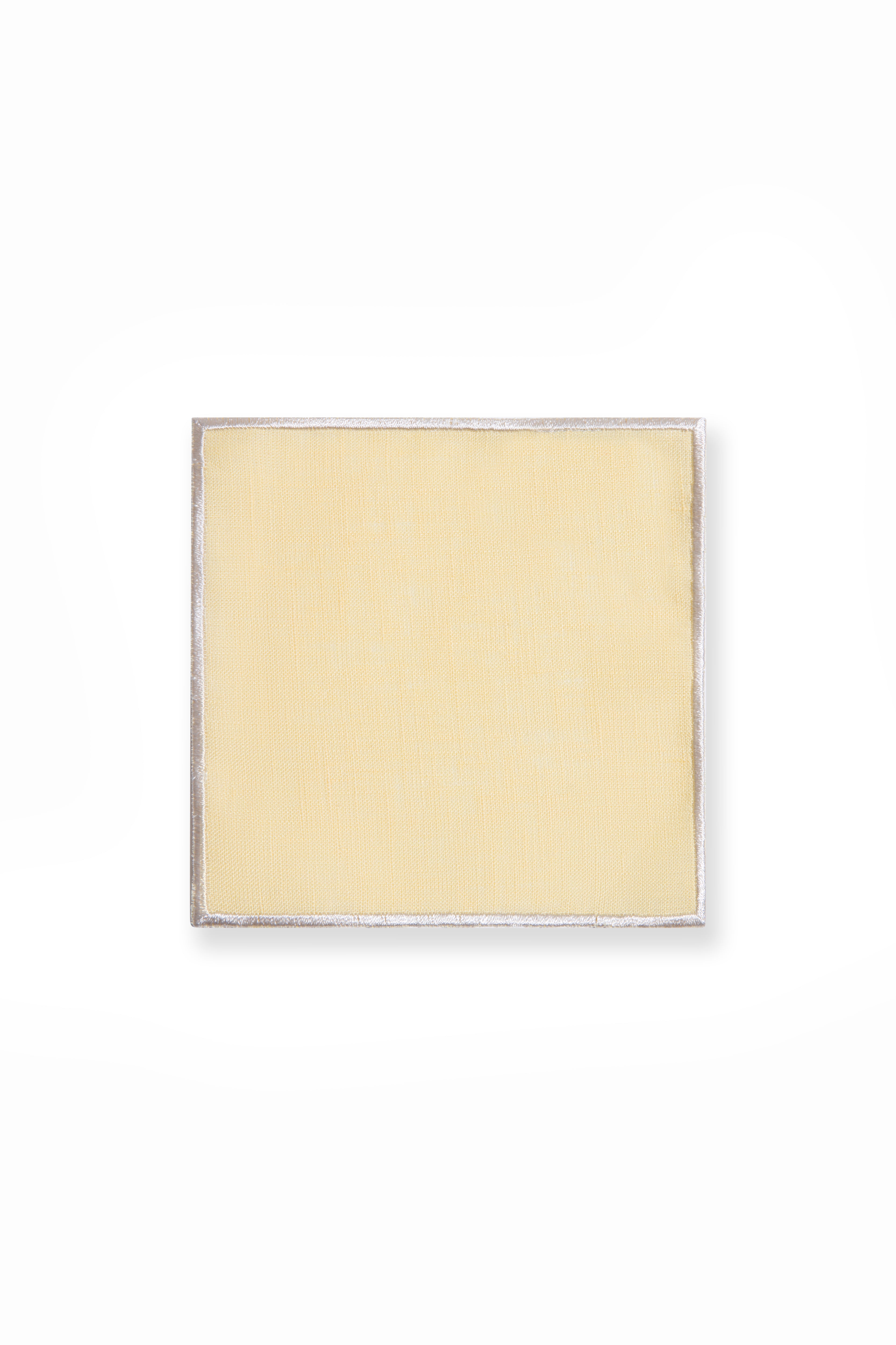 Margot Bardak Altlığı Seti, keten dokusu, kare formu ve gümüş biye detayıyla sade bir şıklık sunar. Toprak sarısı tonuyla sıcak bir zemin oluşturan bu 4’lü set, sofralara zarif bir bütünlük kazandırır.