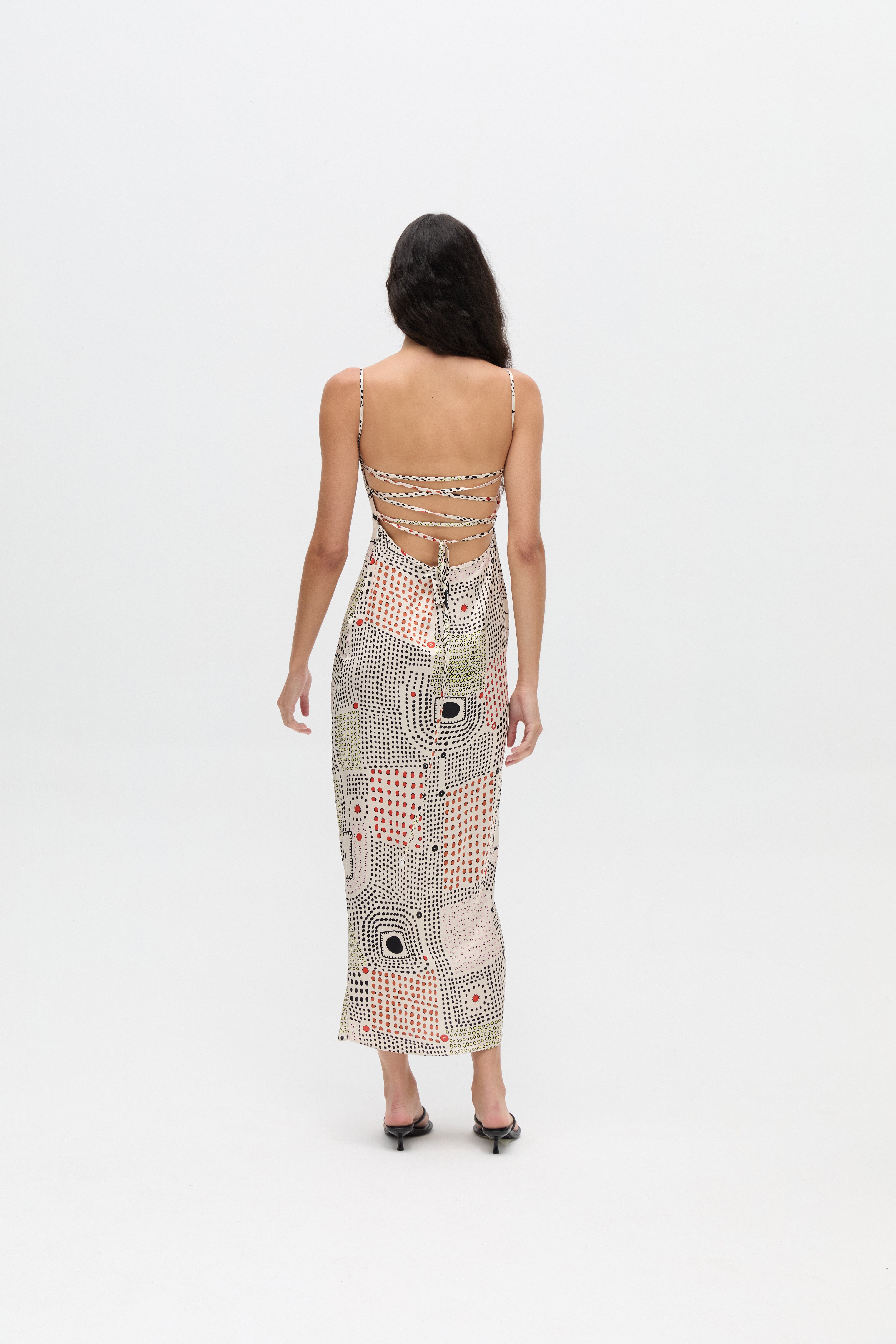 PIPPA – Sırttan Bağlamalı Desenli Midi Elbise