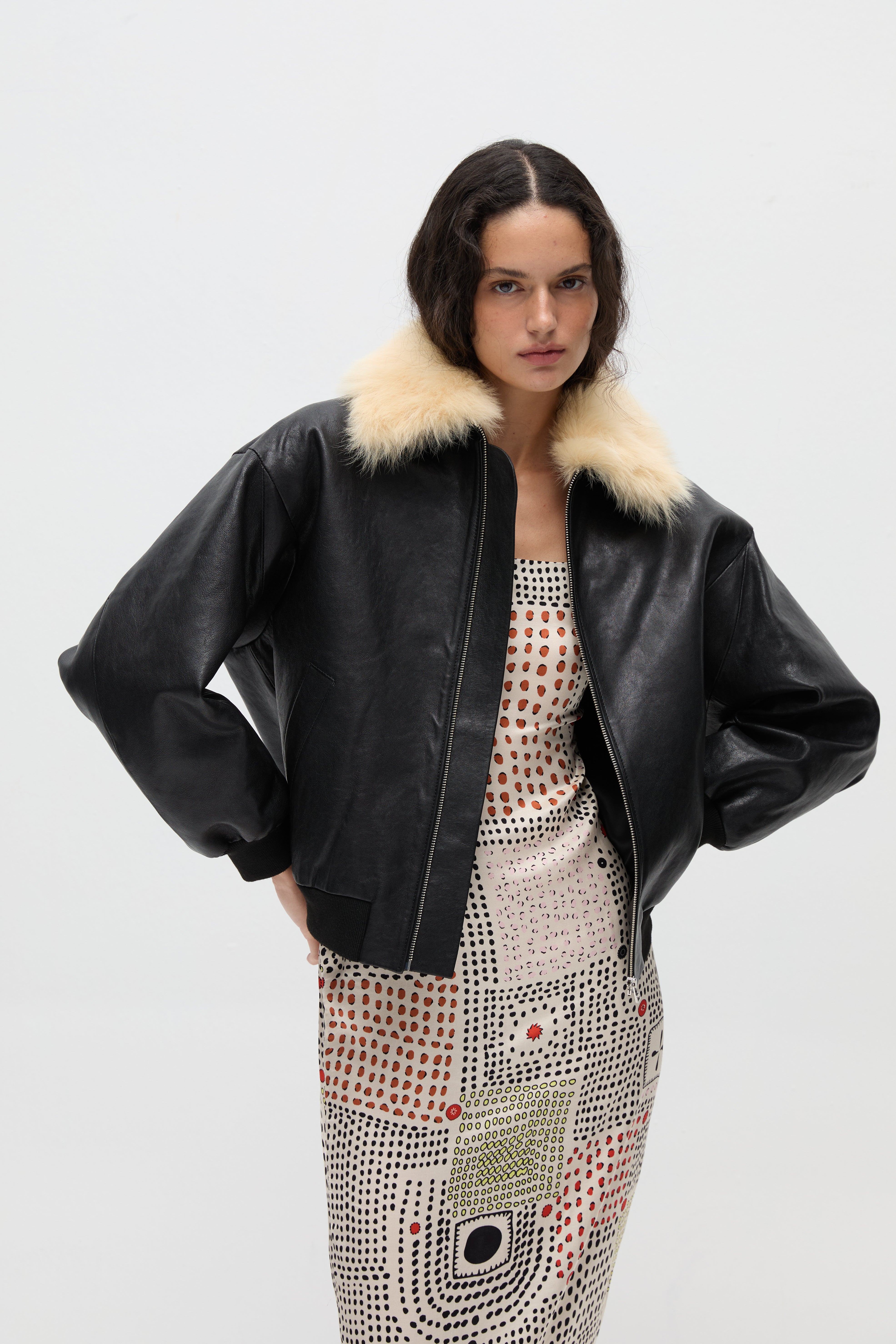XENA – Kürk Yakalı Deri Bomber Ceket
