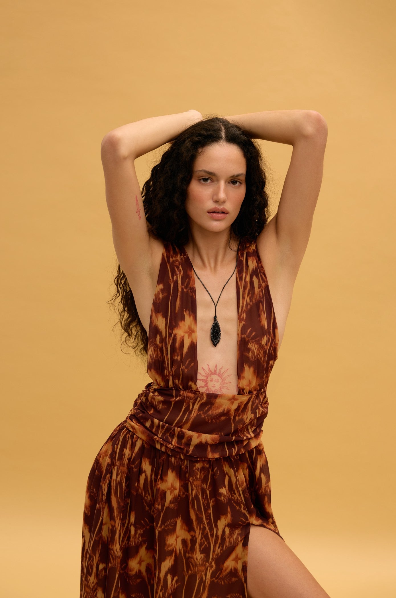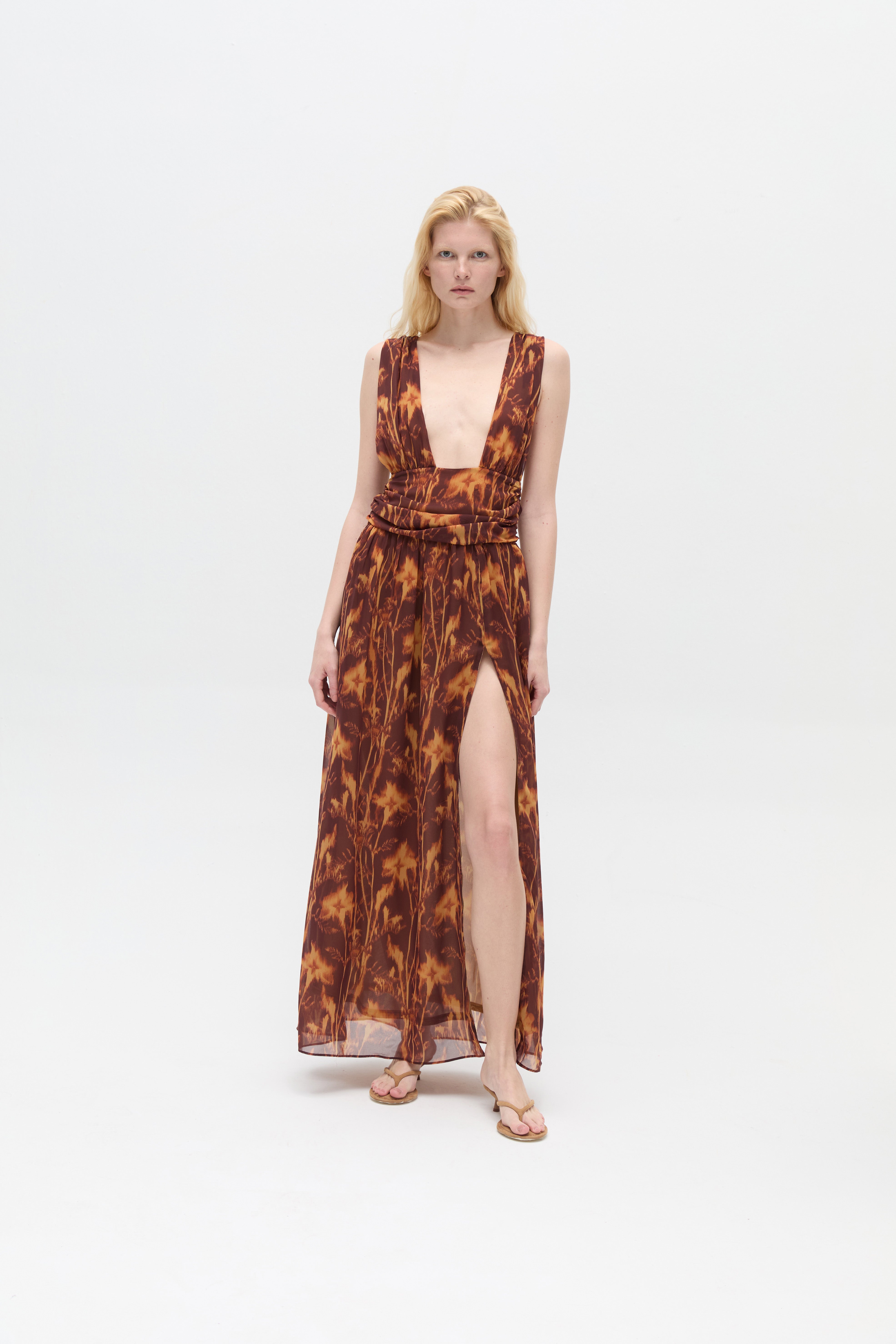 SOLA – Desenli Şifon Ve Kolsuz Maxi Elbise