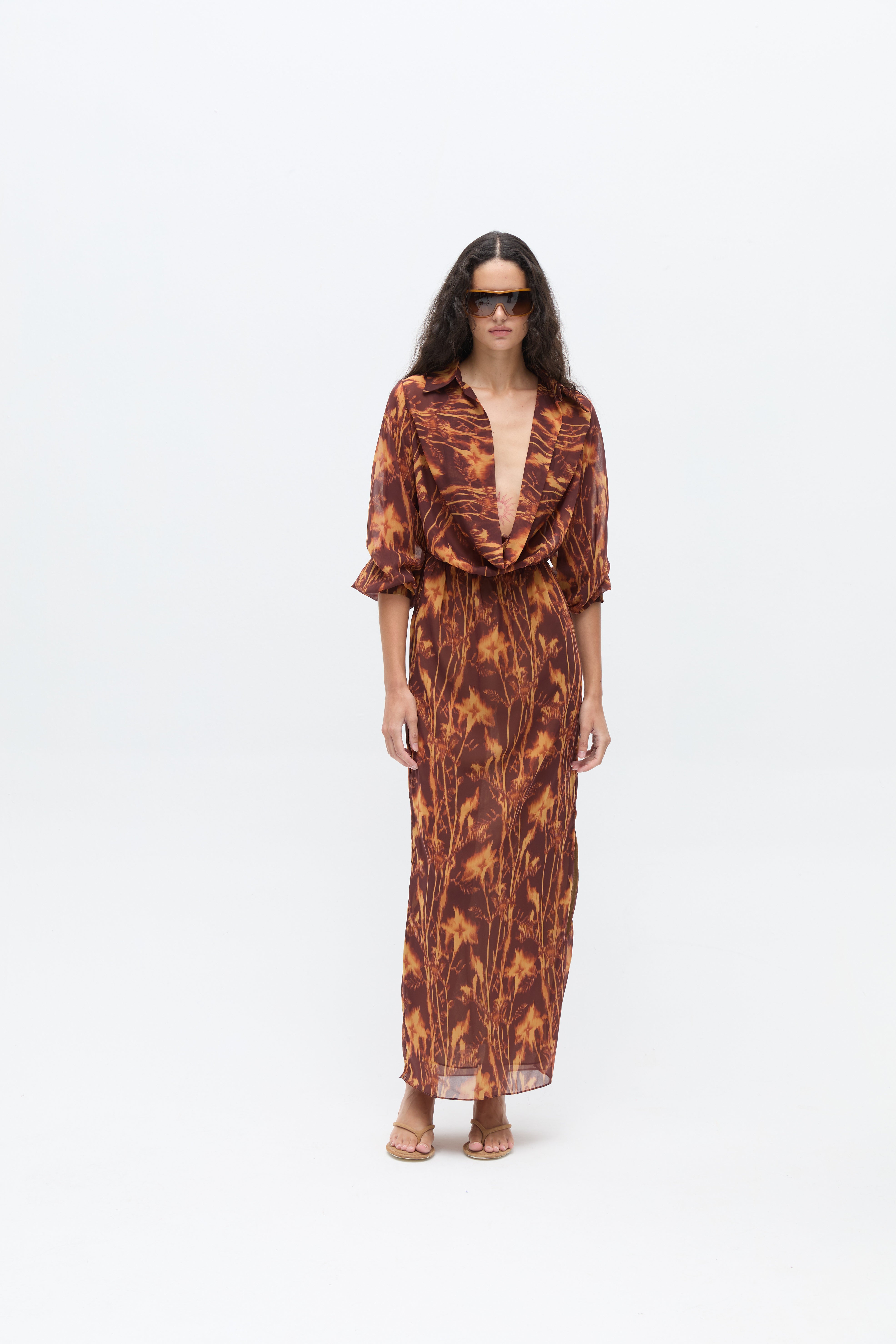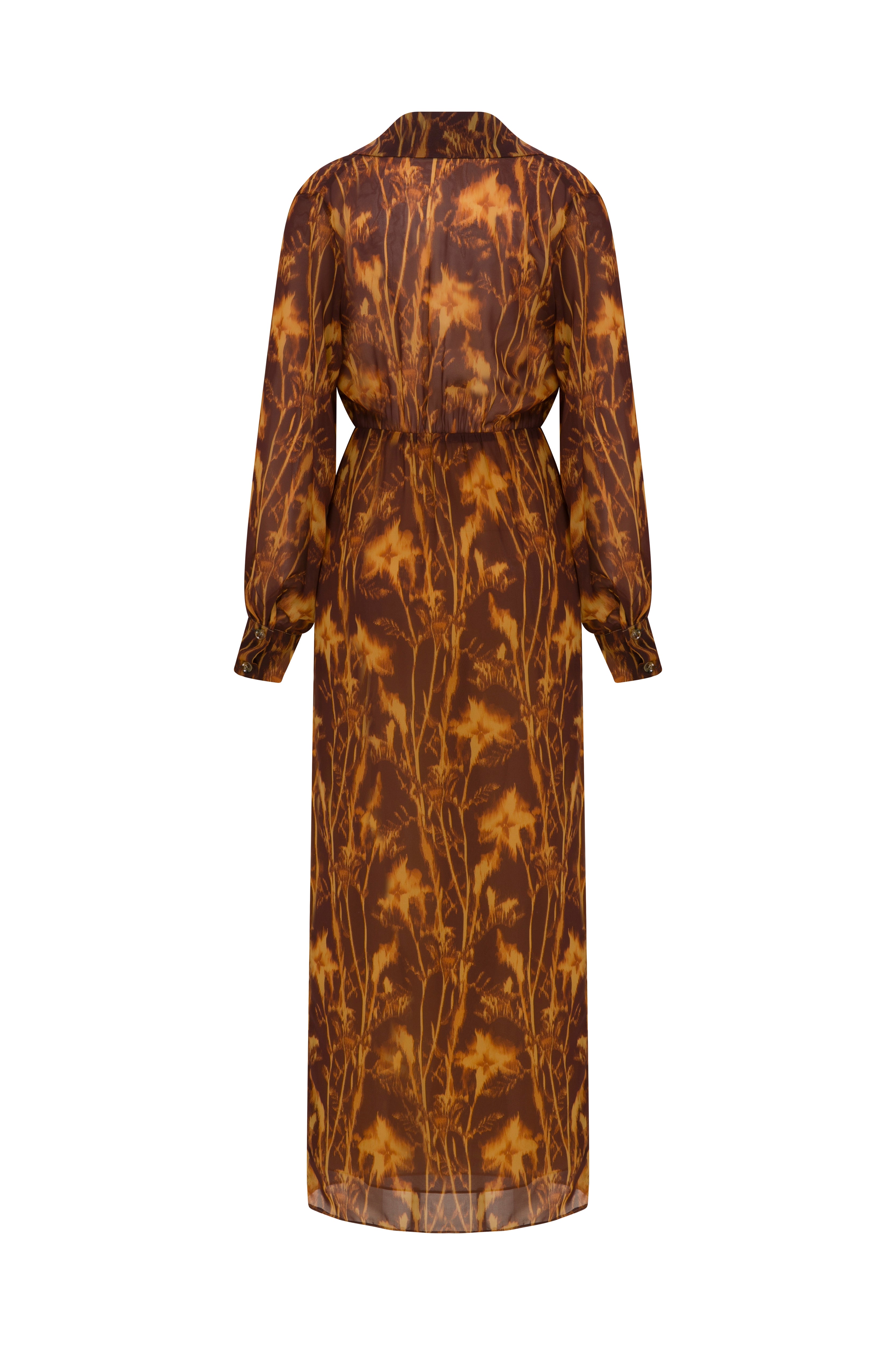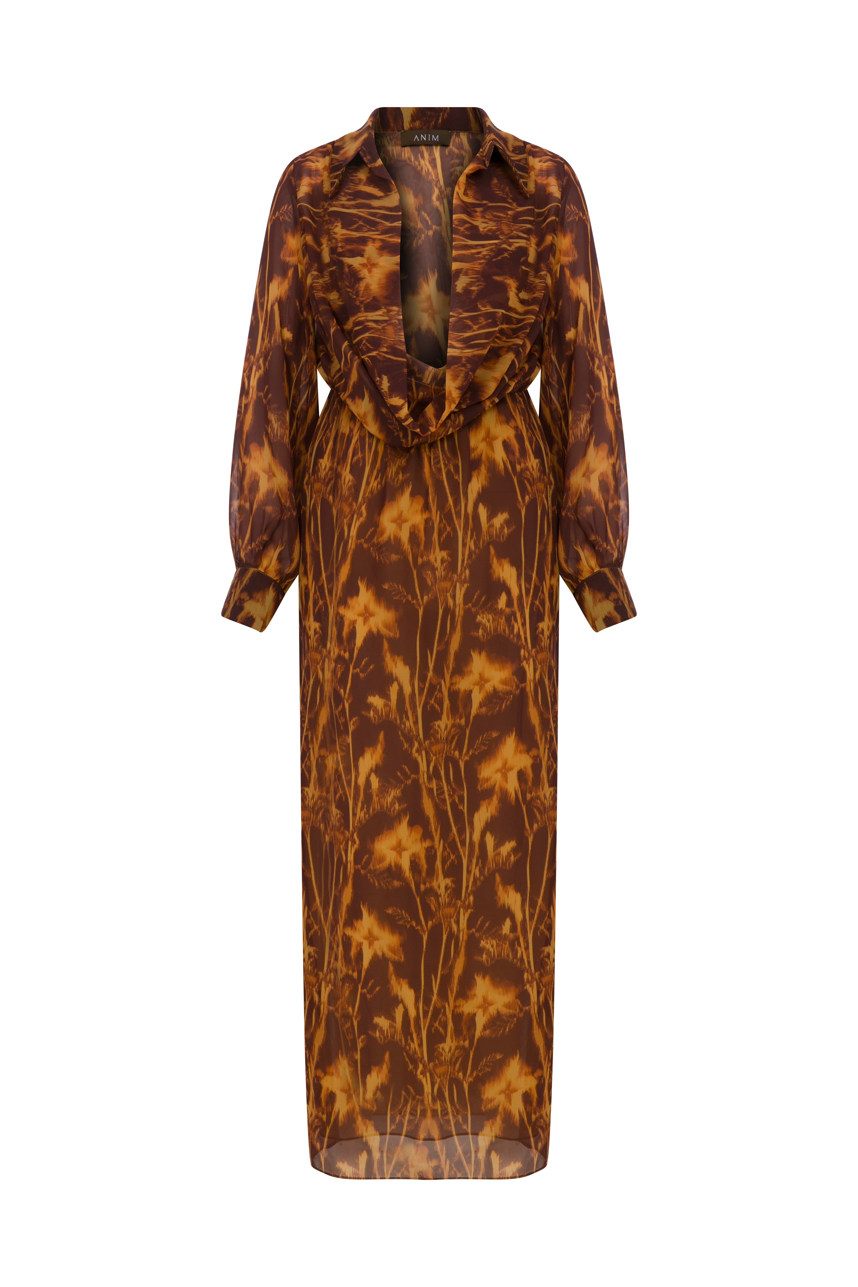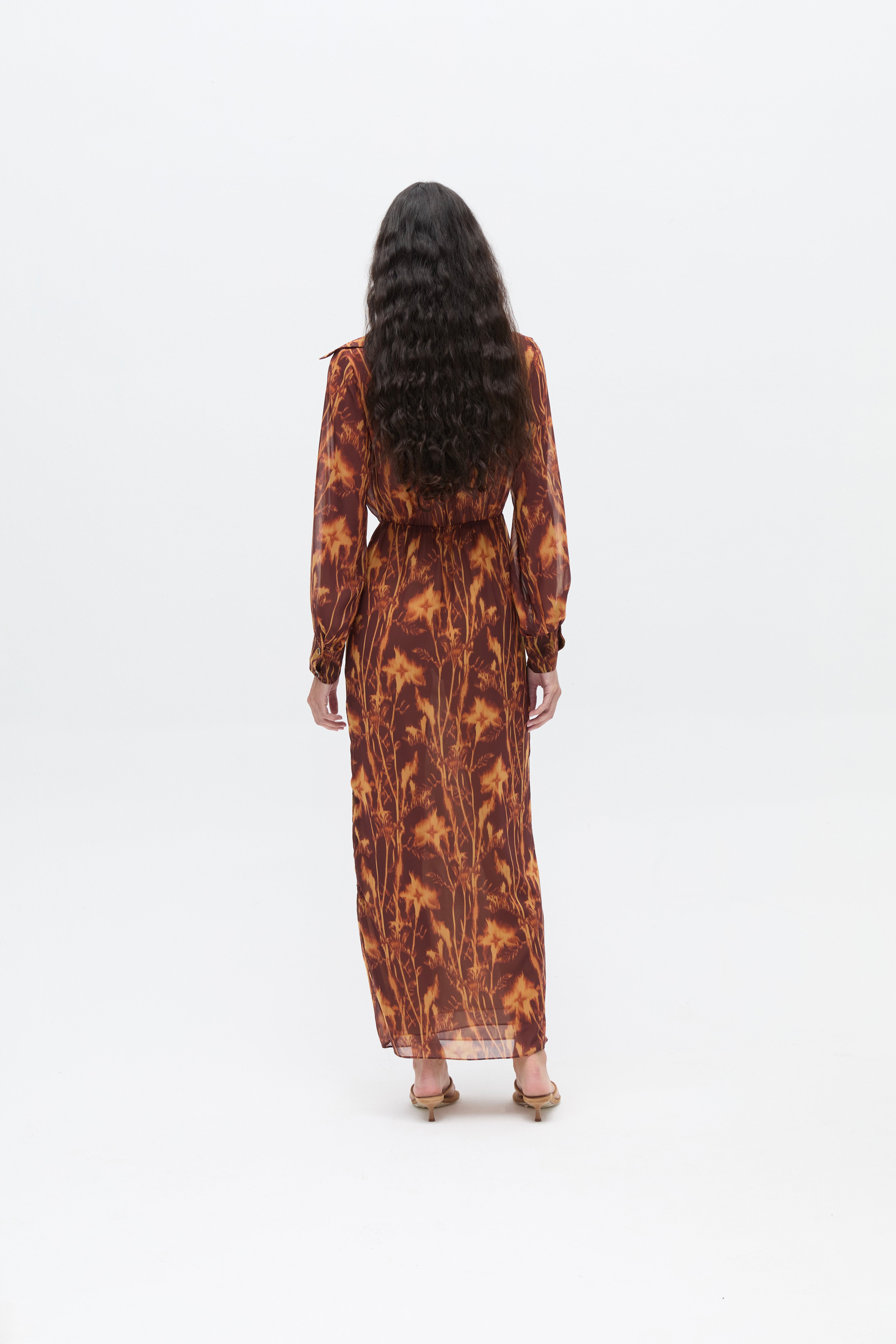 SOLA – Desenli Şifon Ve Uzun Kollu Maxi Elbise