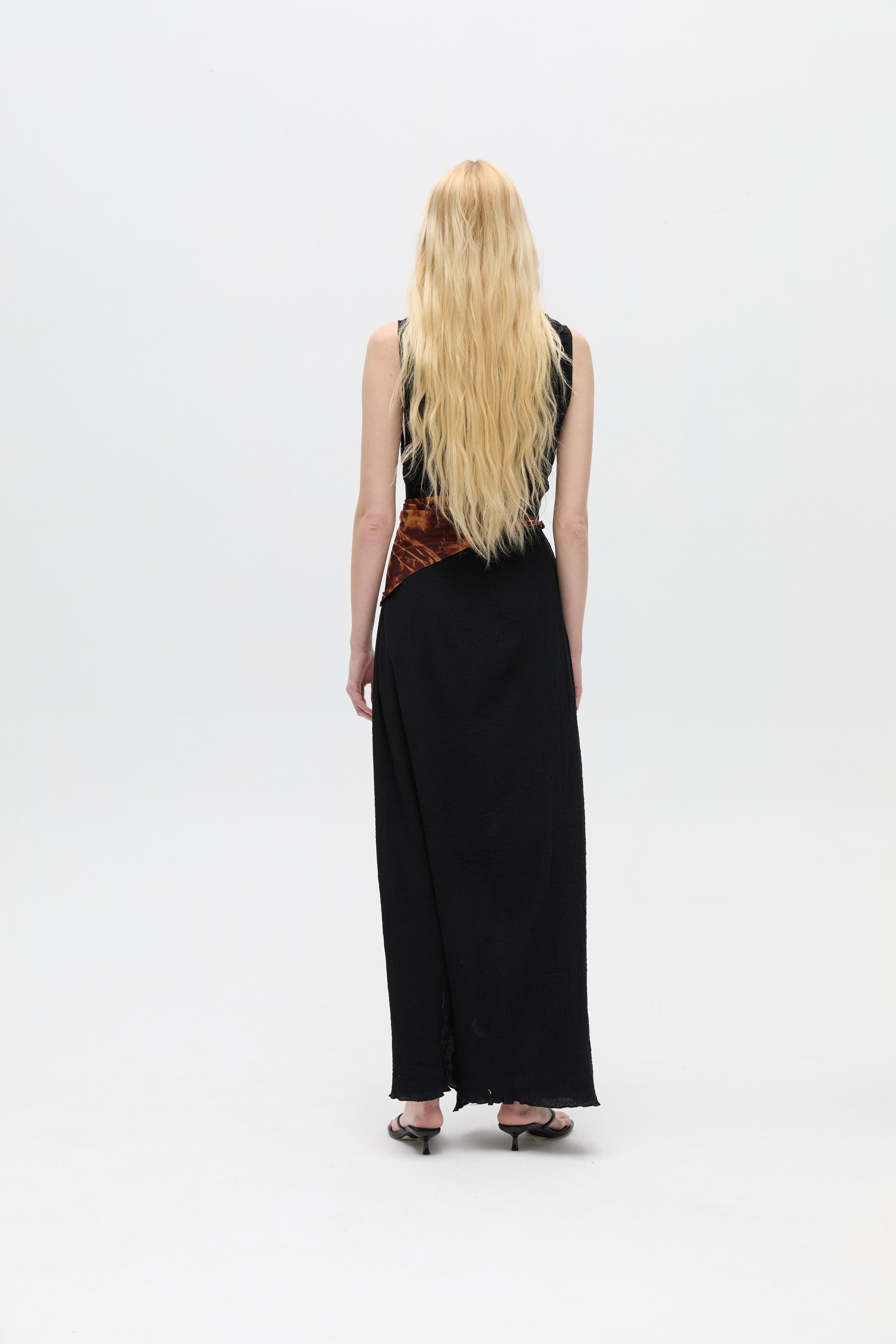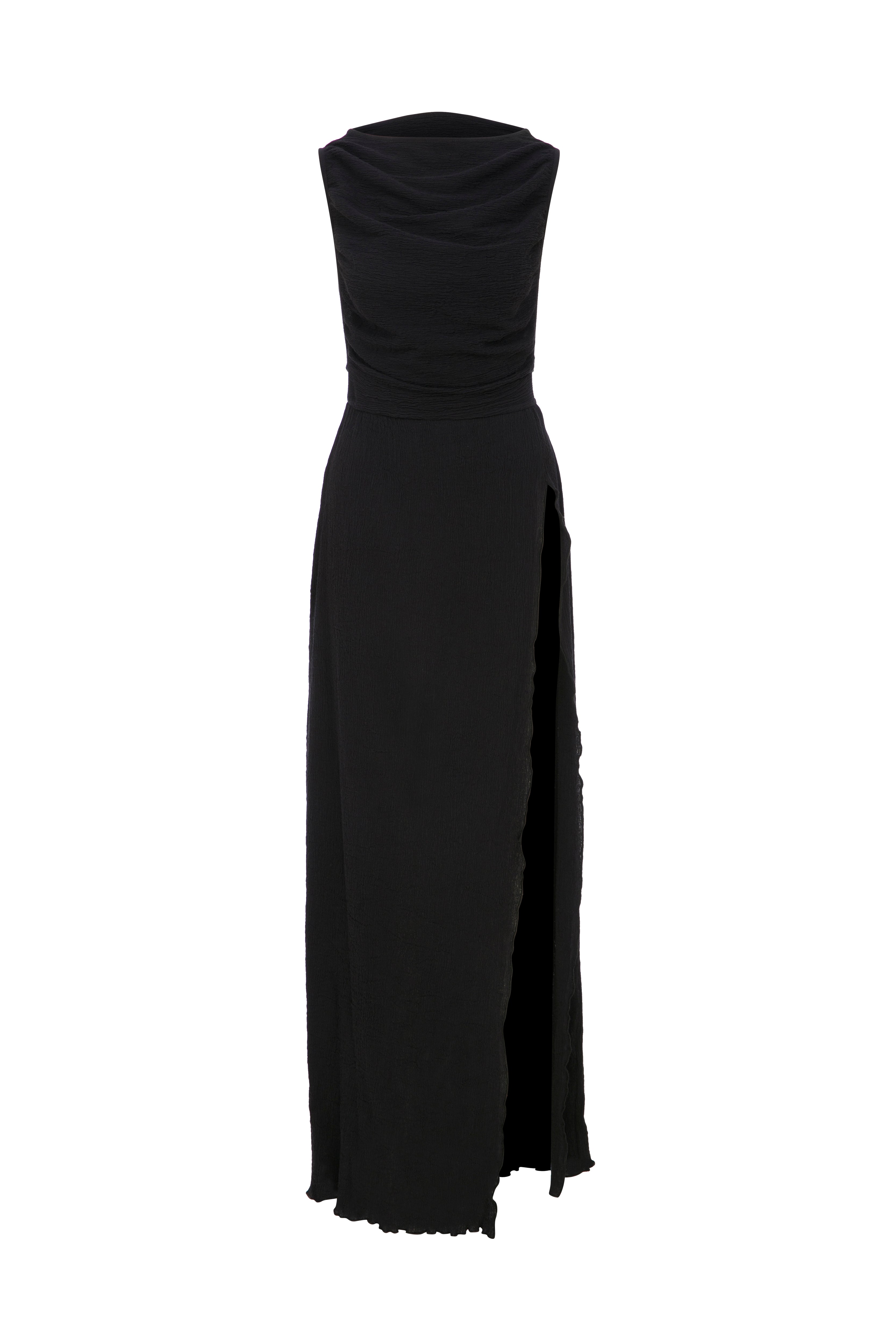 SIENNA – Kırışık Dokulu Ve Kolsuz Siyah Maxi Elbise