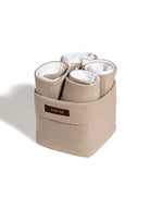 Banyonuzu neşelendirmek ve aynı zamanda üstün kaliteli Türk havlularıyla donatmanın en kolay ve en keyifli yolu. Bu set 4 adet bej şeritli yüz havlusu ve çok amaçlı kullanıma uygun bir kese içerir.