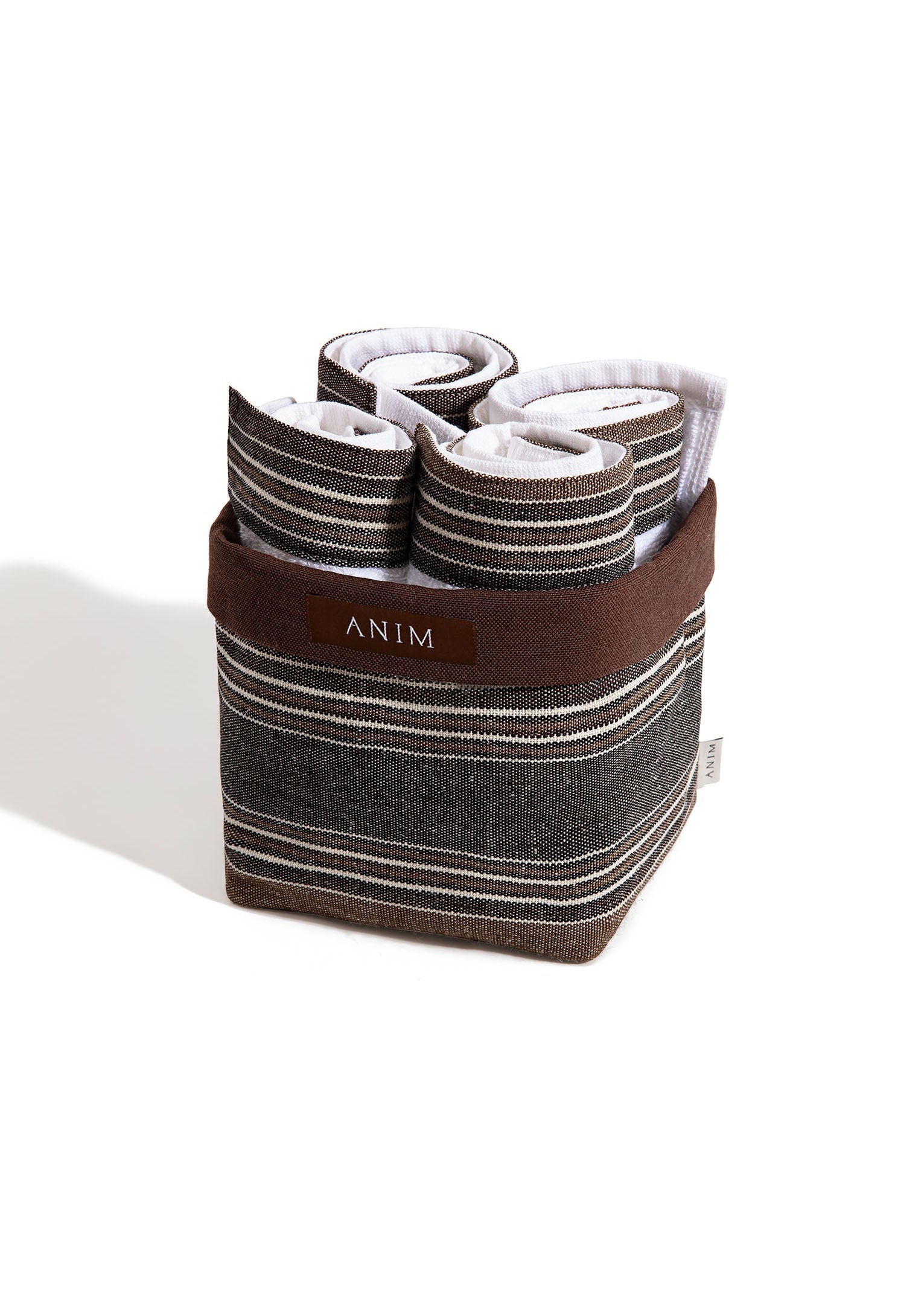 Banyonuzu neşelendirmek ve aynı zamanda üstün kaliteli Türk havlularıyla donatmanın en kolay ve en keyifli yolu. Bu set 4 adet kahverengi garcia şeritli yüz havlusu ve çok amaçlı kullanıma uygun bir kese içerir.