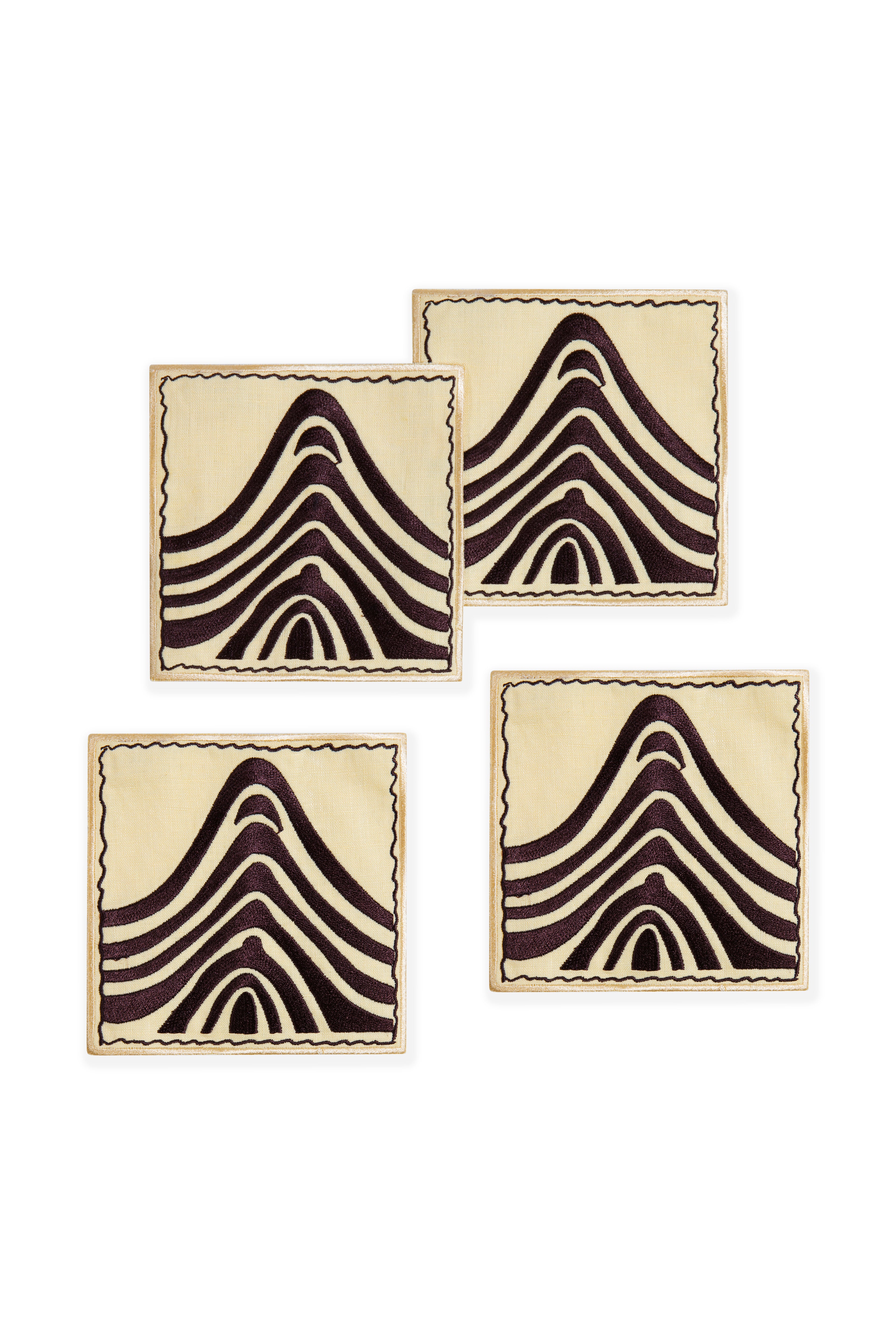 Vera Bardak Altlığı Seti, kıvrımlı hatlarıyla dağ siluetini andıran özgün deseni sayesinde masaya modern ve dikkat çekici bir görünüm kazandırır. Krem ve koyu tonların dengeli birlikteliği, hem günlük sofralara hem özel buluşmalara sade bir şıklık ekler. Yüzeyi korurken ortama karakter katar, 4’lü set olarak satılır.