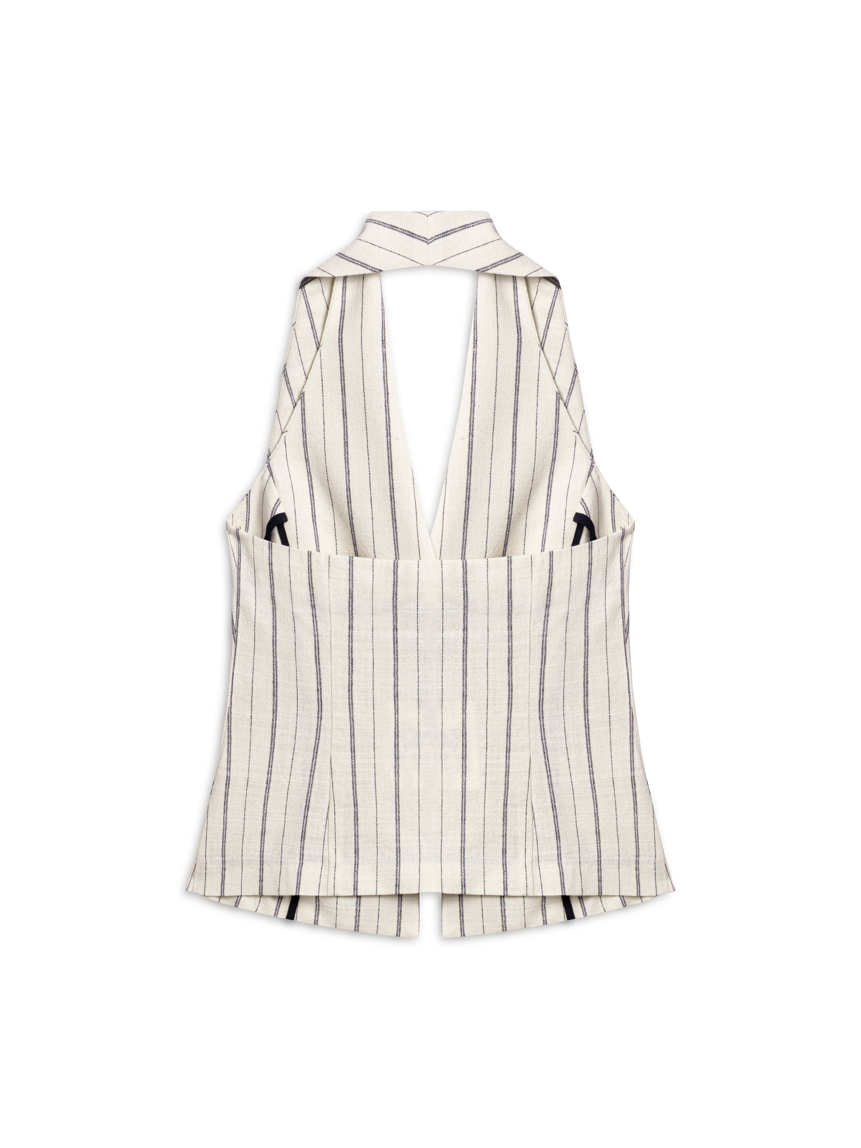 • Anim X Nocturne iş birliğine ait sınırlı üretim çizgili halter yaka üst, dökümlü yaka detayı ile modern ve iddialı bir silüet oluşturur.