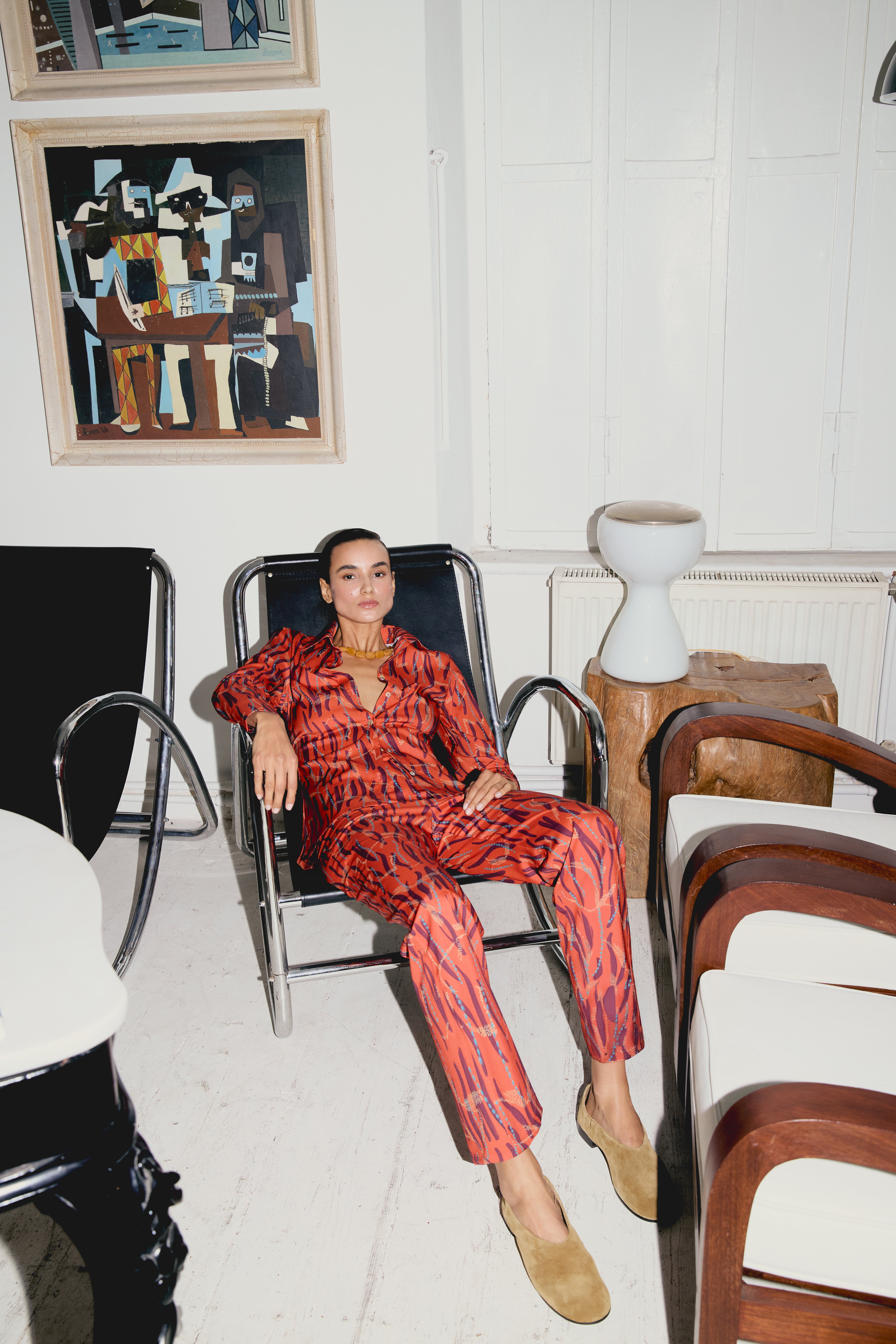 Elastan katkılı pamuk karışımı kumaşıyla rahat bir oturuş ve akıcı bir silüet sunar.