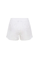 Kira Şort beyaz nakışlı pamuk kumaştan üretilmiştir ve esnek, rahat bir uyum sunan lastikli bele sahiptir.