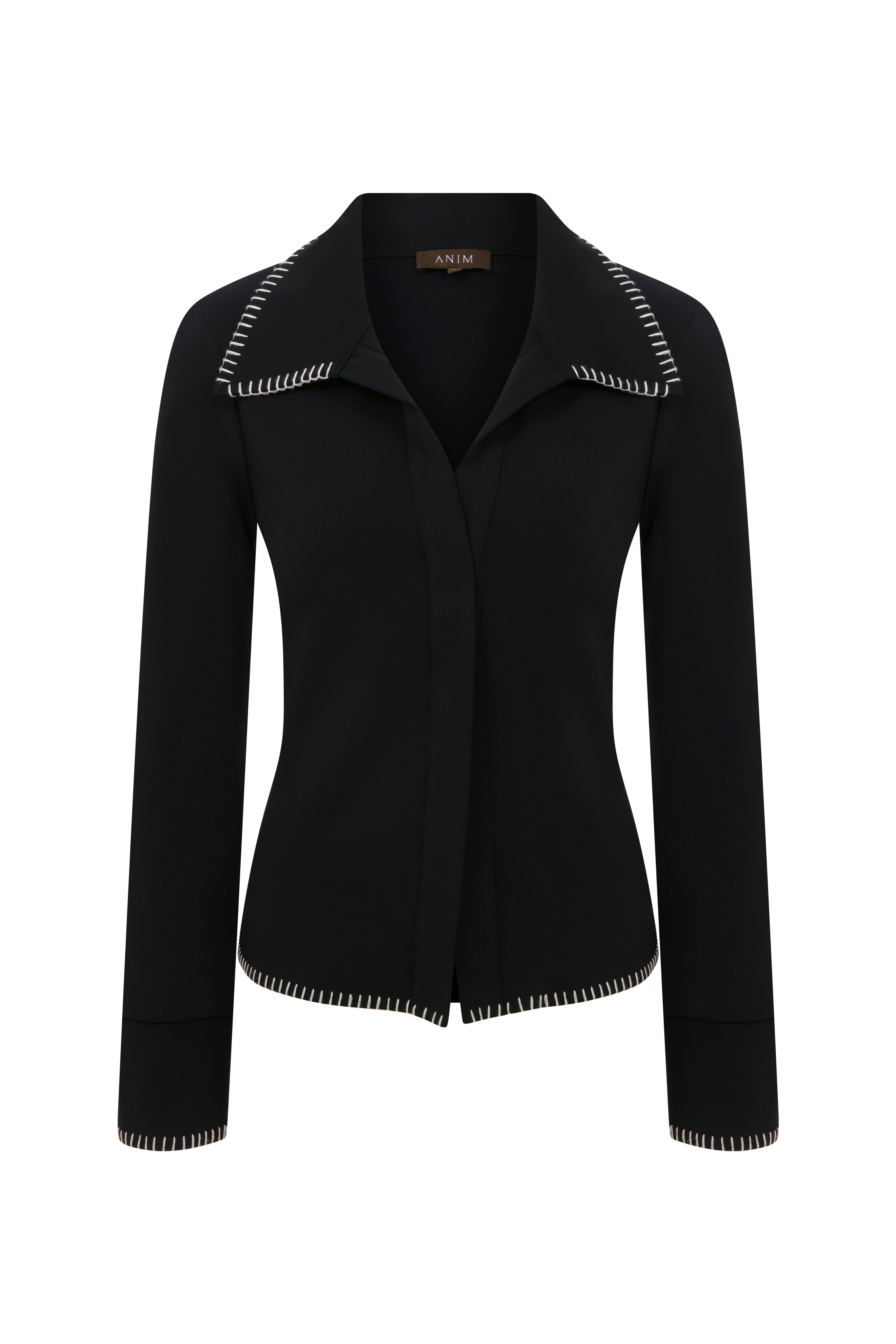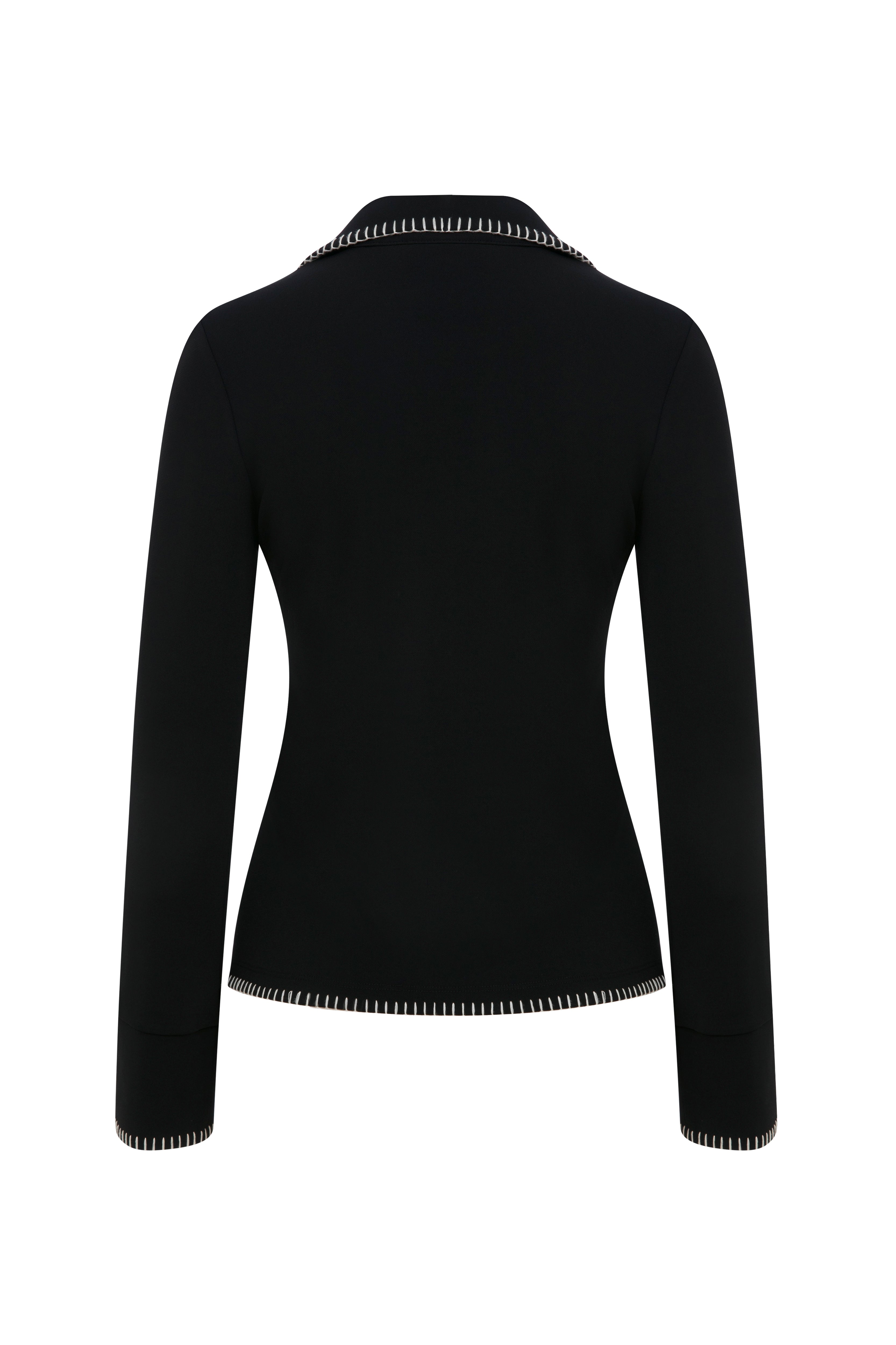 Koza Siyah Üst pürüzsüz polyester–elastan karışımından üretilmiş uzun kollu bir tasarıma sahiptir.