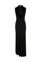 The Mimi Dress is a high neck sleeveless maxi dress in timeless black, made from lightweight viscose with an elegant drape. Designed to skim the body without clinging, it features asymmetric draping that adds depth and visual interest. The elongated silhouette and refined details make it ideal for evening events or sophisticated daytime looks.