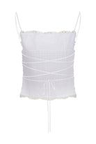 Arkası Bağcık Detaylı Ve Nakışlı Beyaz Büstiyer