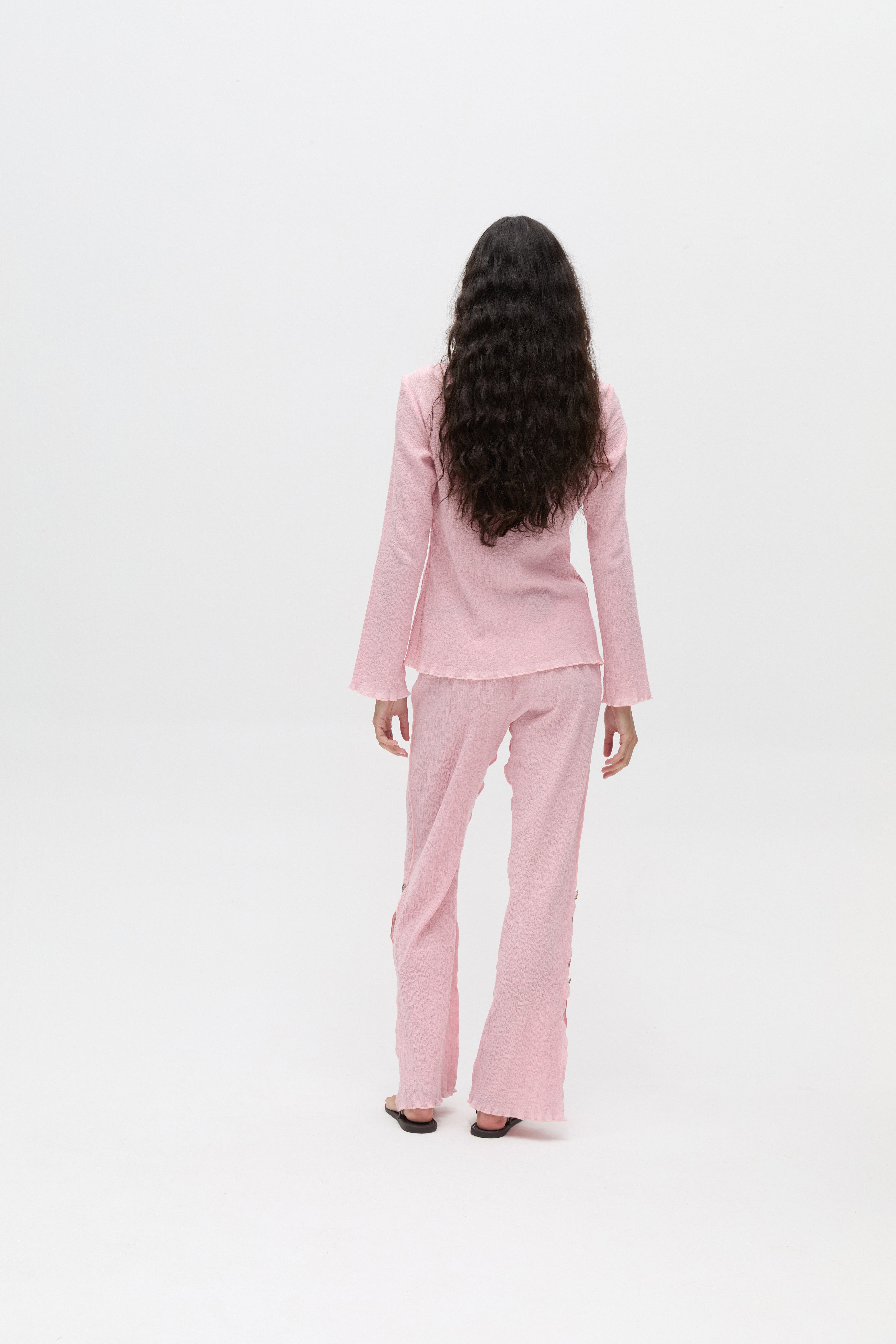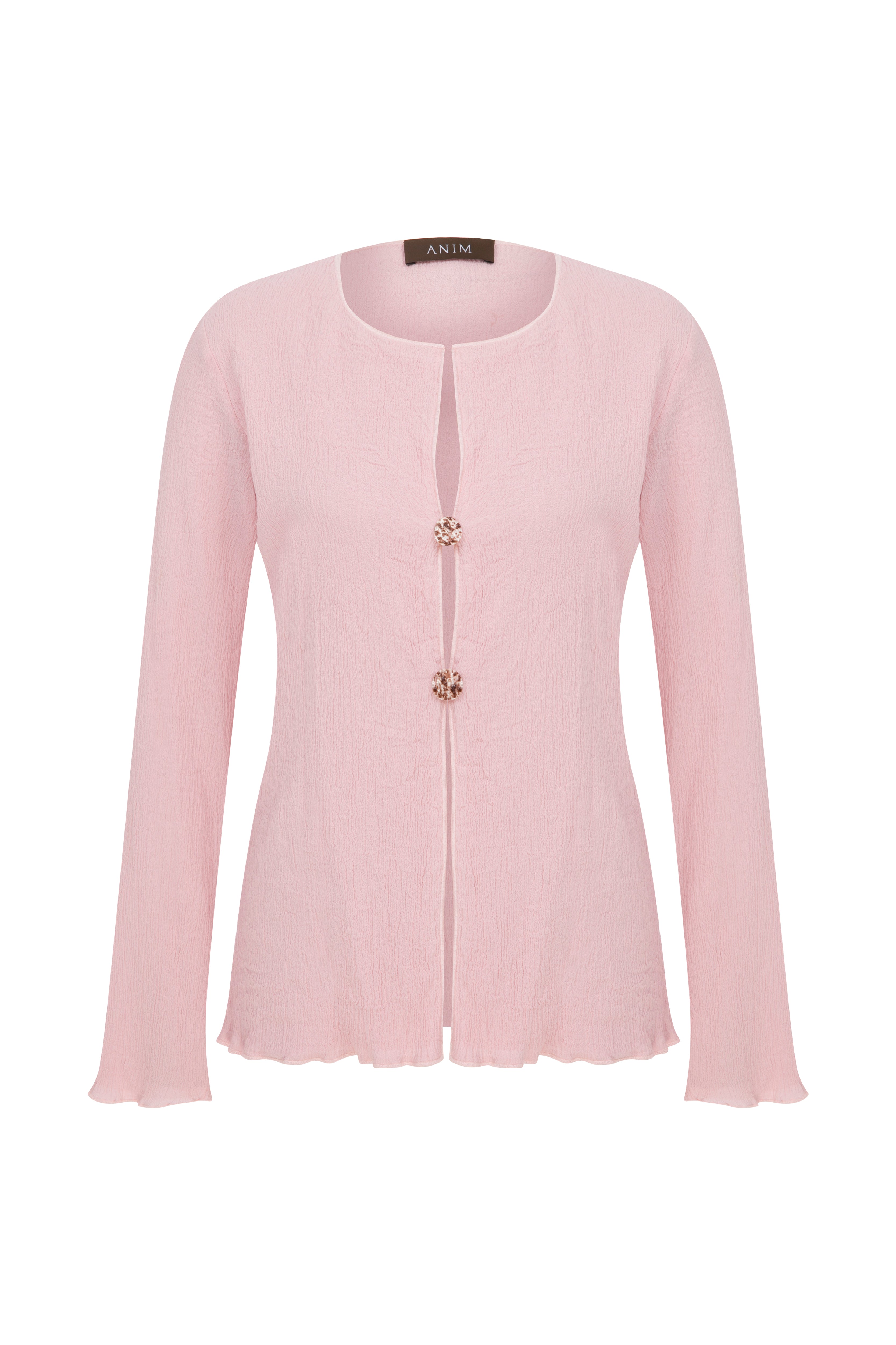 Biye Detaylı Kırışık Dokulu Pembe Üst