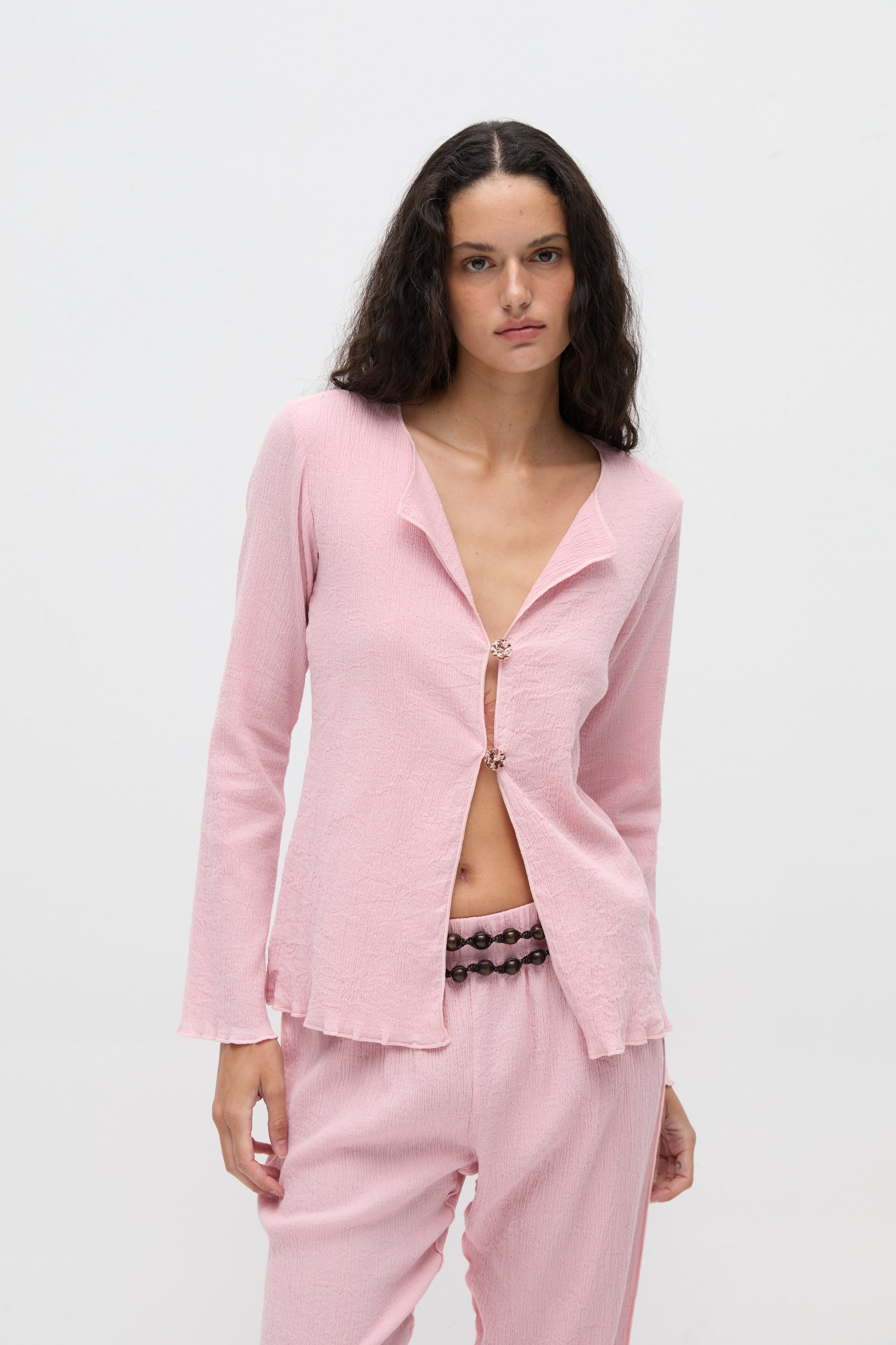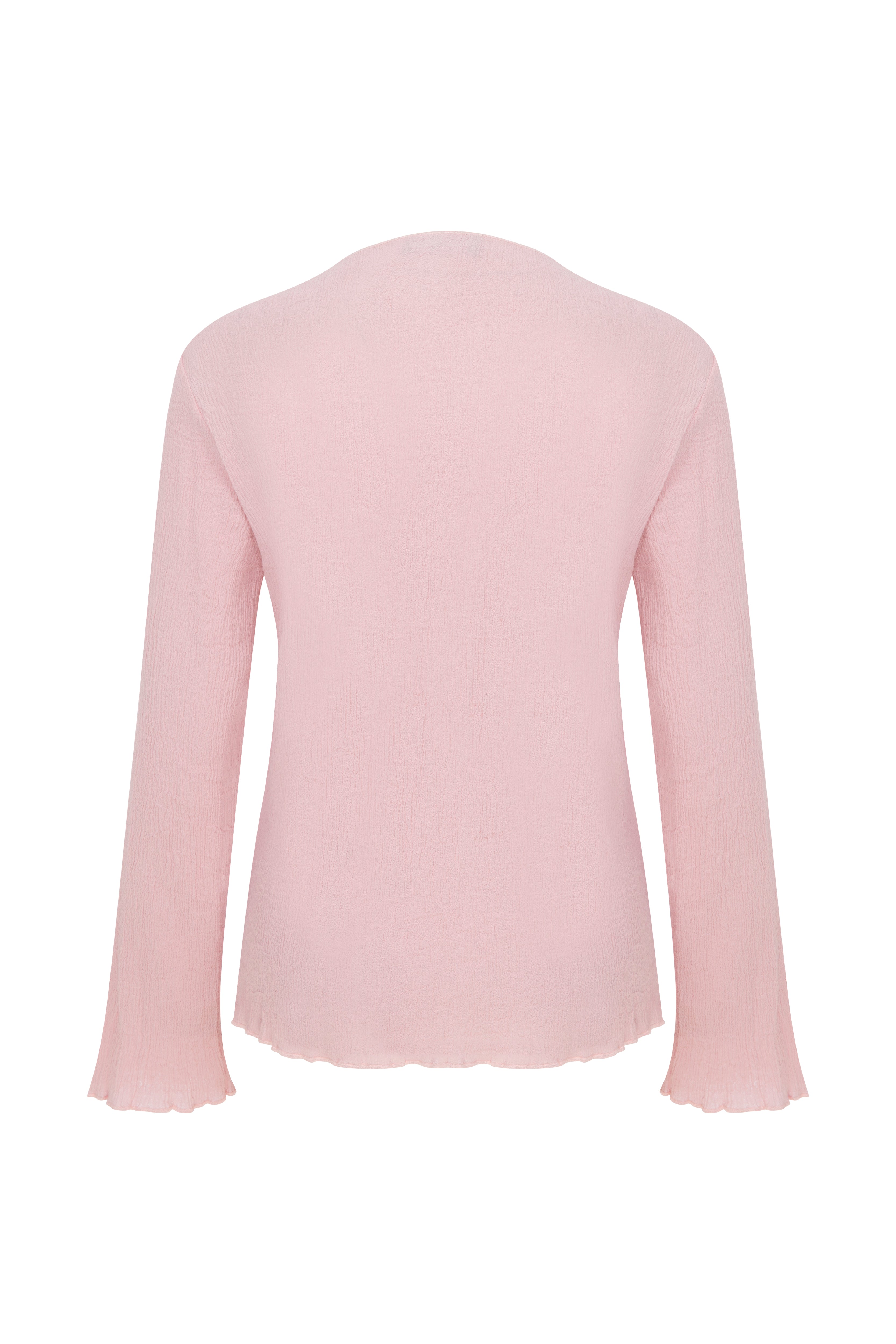 Biye Detaylı Kırışık Dokulu Pembe Üst