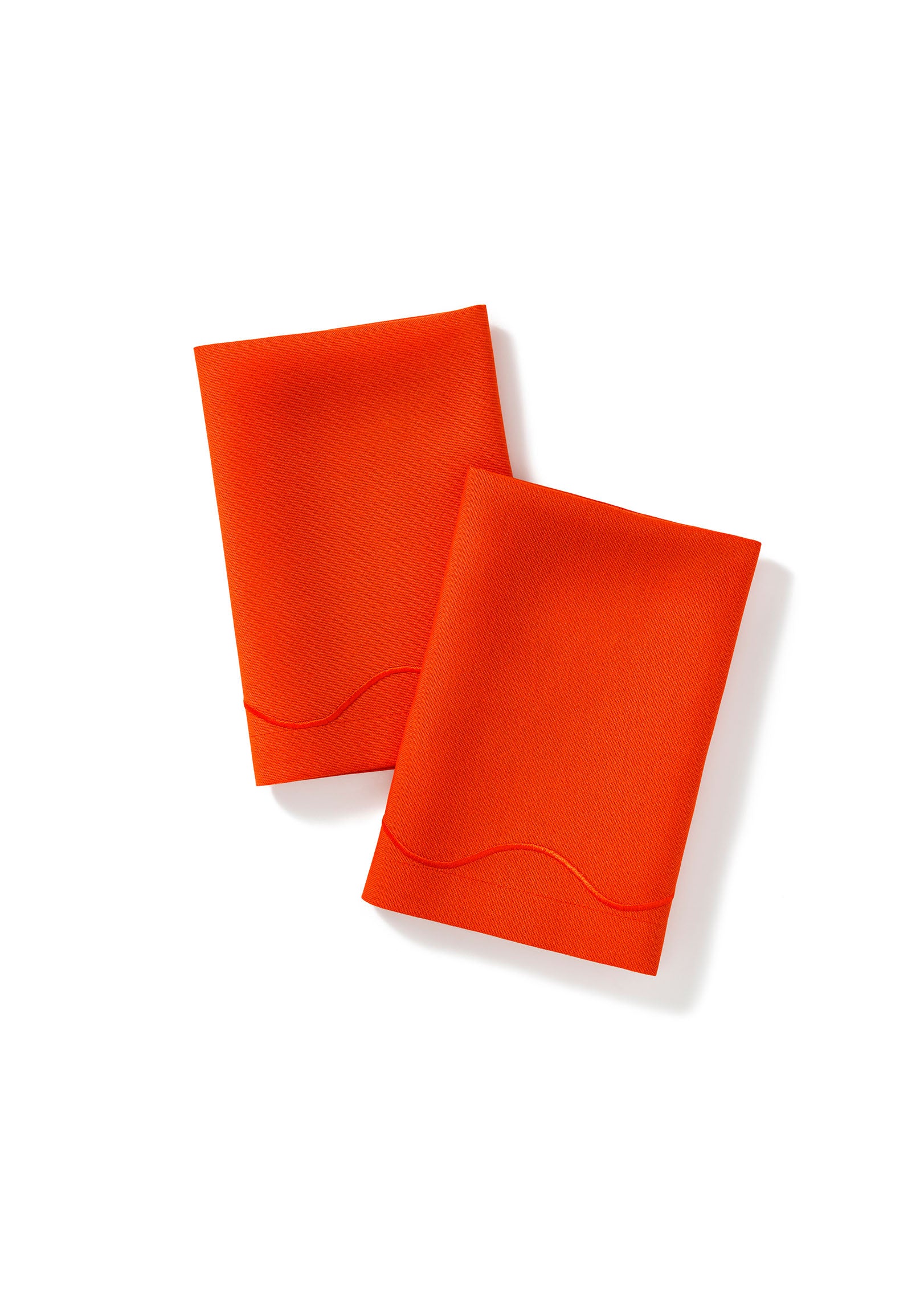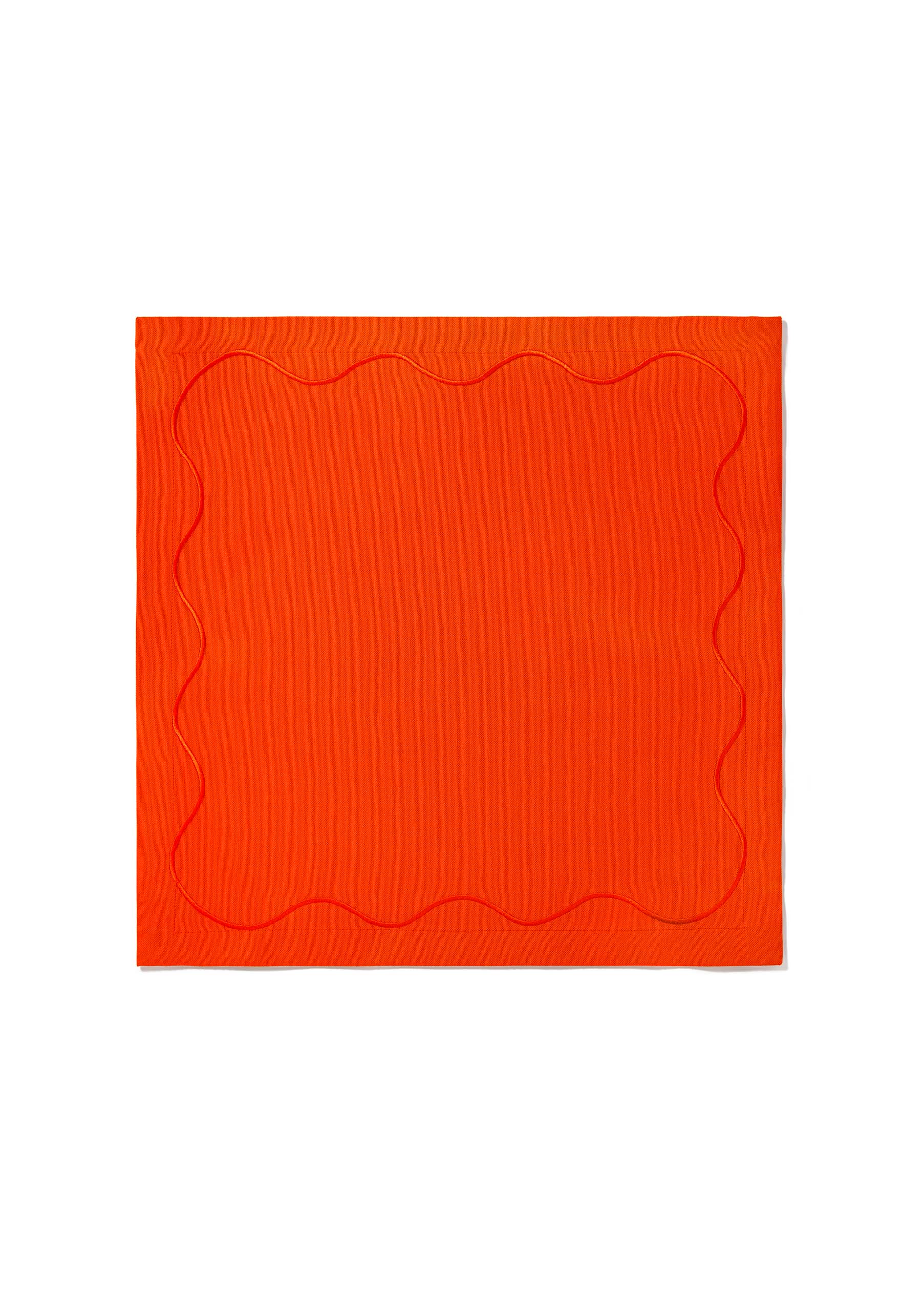 Azo Peçete, canlı turuncu tonuna zarif nakış detaylarıyla rafine ve el işi bir dokunuş katar. Hem günlük sofralar hem de özel davetler için uygundur ve tekli olarak satılır.