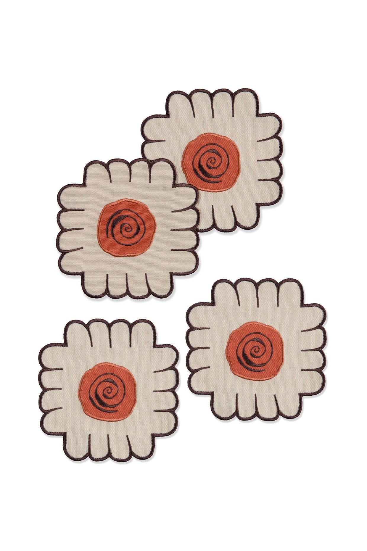 Fano Bardak Altlığı Seti, her biri zarif aplike detaylarıyla süslenmiş dört adet yelpaze şeklinde bardak altlığından oluşur. Yumuşak ekru tonunda tasarlanan bu set her masaya neşeli ve özgün bir dokunuş katar.
