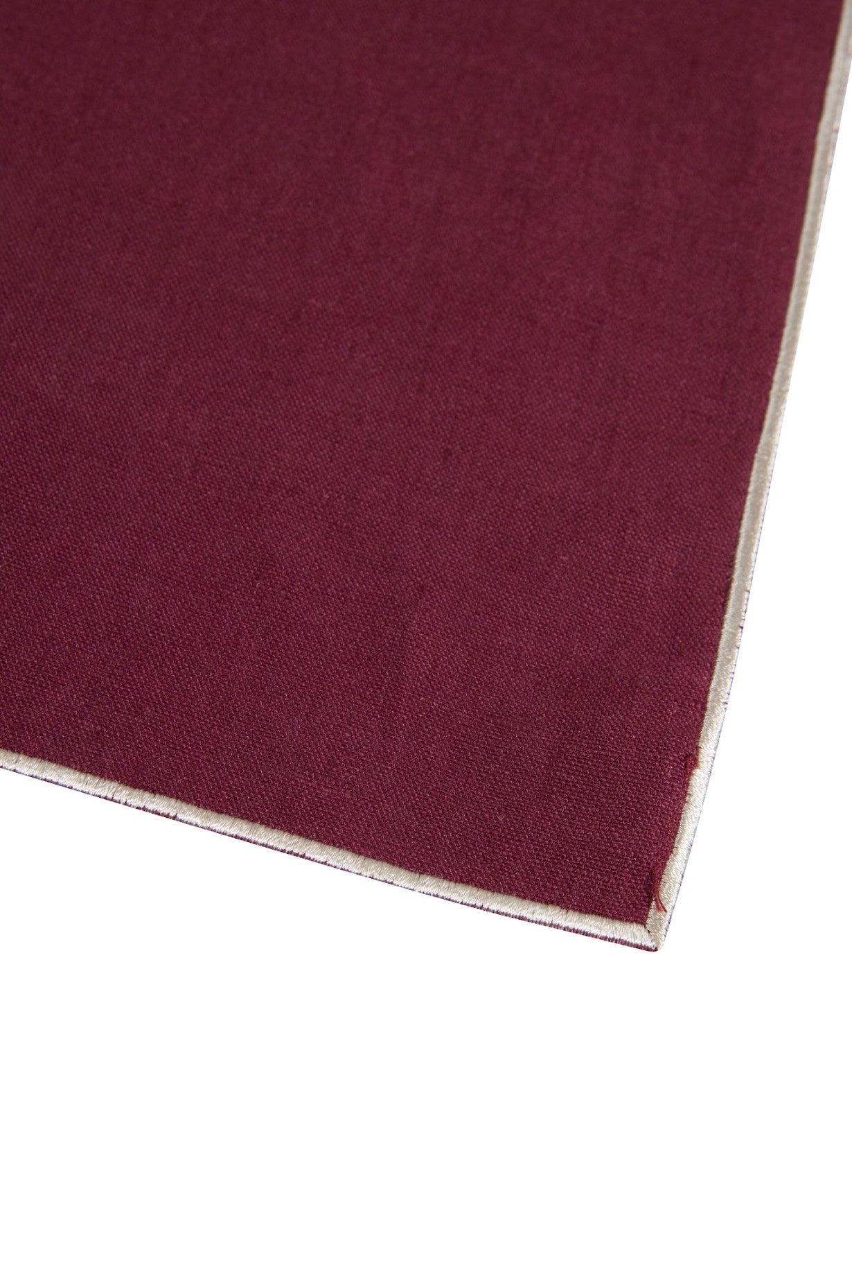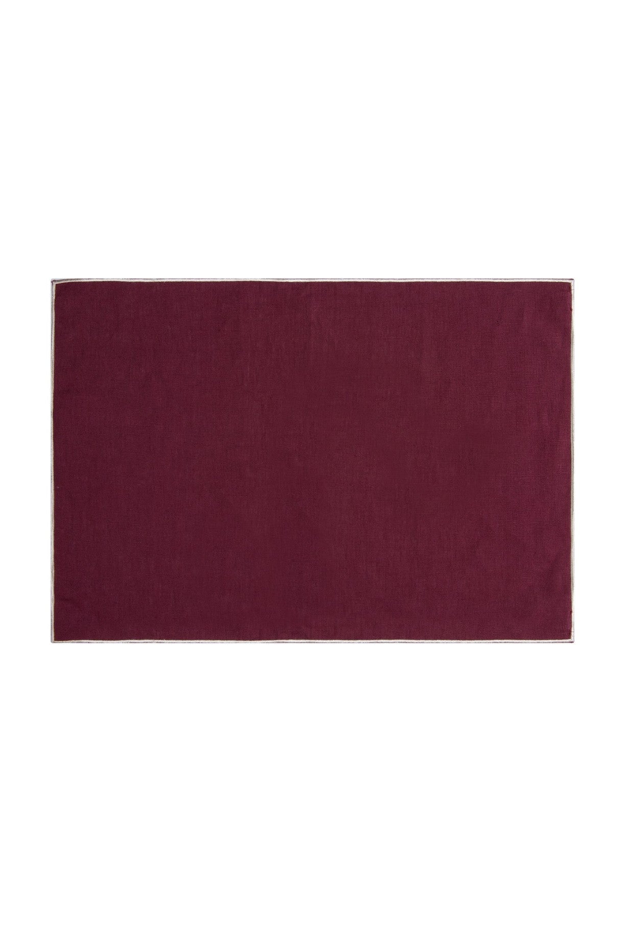 Margot Amerikan Servisi, zengin bordo ketenden üretilmiş ve kontrast ekru biyeyle tamamlanmıştır. Sofranıza sofistike ve zamansız bir görünüm kazandırır. Her öğünü özel ve davetkâr hissettiren şık bir dokunuş sunar.