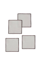 Margot Bardak Altlığı Seti, yumuşak ekru ketenden üretilmiş dört şık bardak altlığından oluşur ve her biri kontrast kahverengi biyeyle süslenmiştir. Yüzeylerinizi korurken dekorunuza zarif bir dokunuş katar.