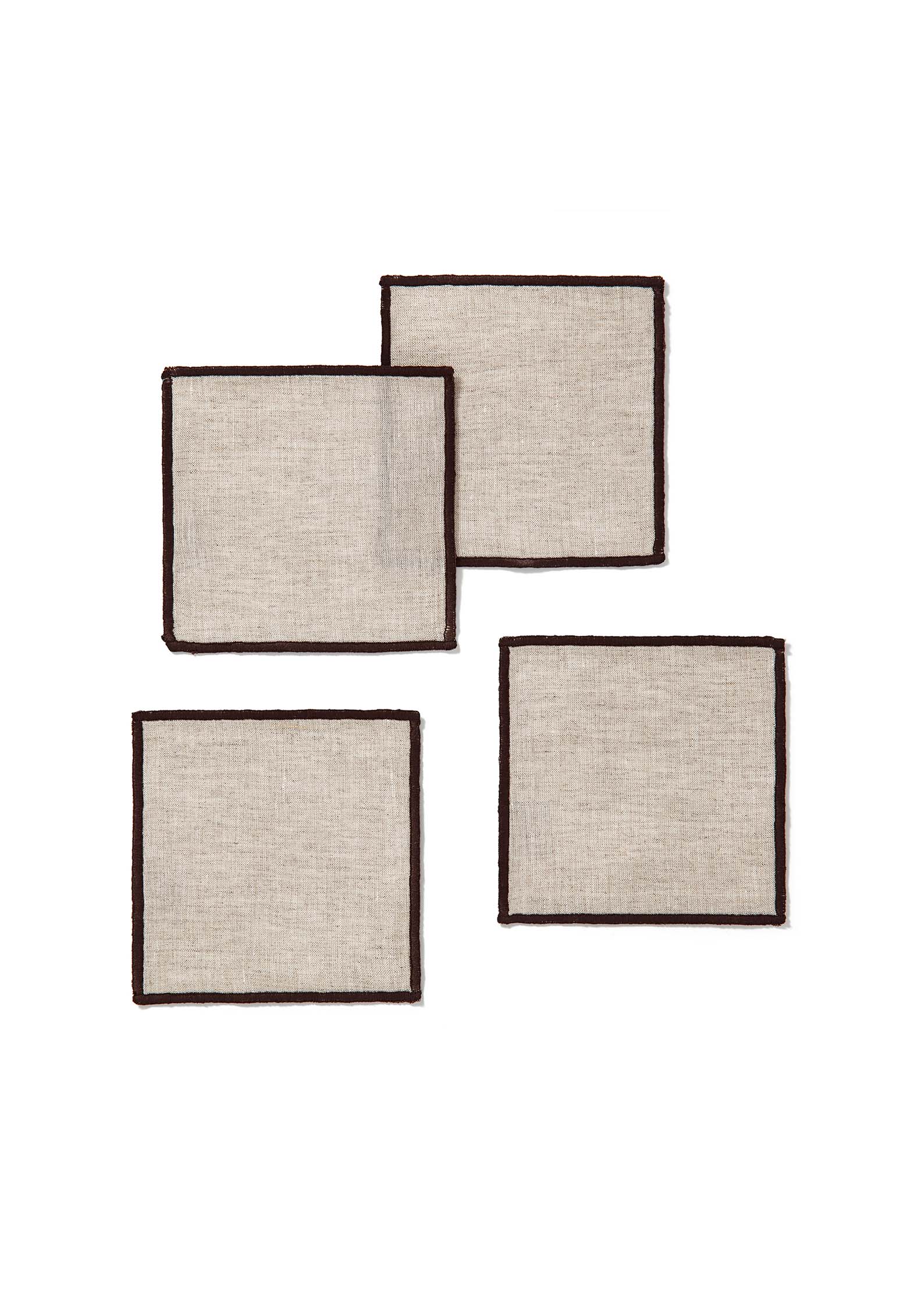 Margot Bardak Altlığı Seti, kontrast kahverengi biye detayıyla çevrelenmiş keten kumaştan üretilmiş dört adet bardak altlığından oluşur. Klasik stili günlük işlevsellikle birleştirir. Kahve masaları ya da yemek sofraları için mükemmel bir tamamlayıcıdır.