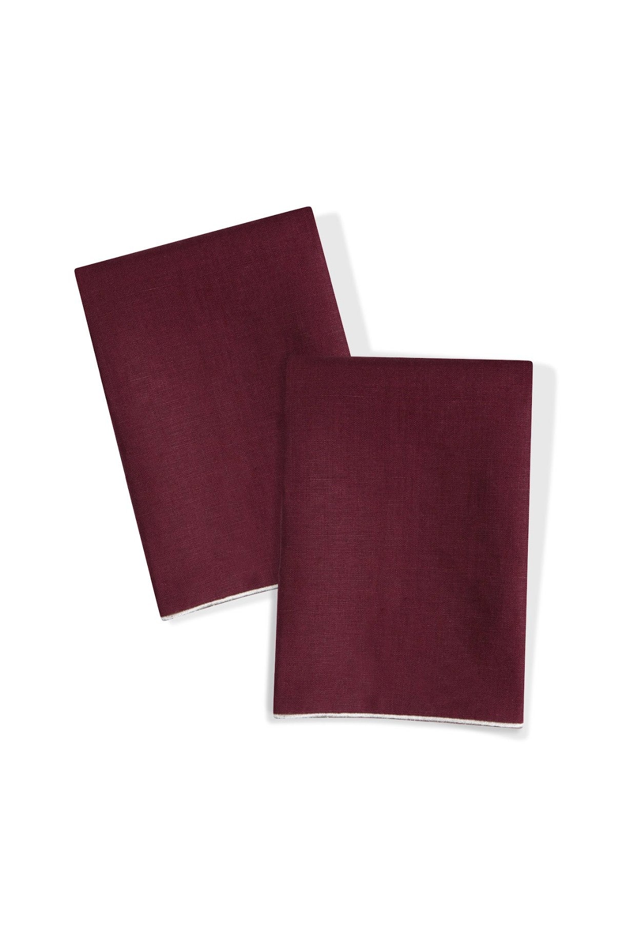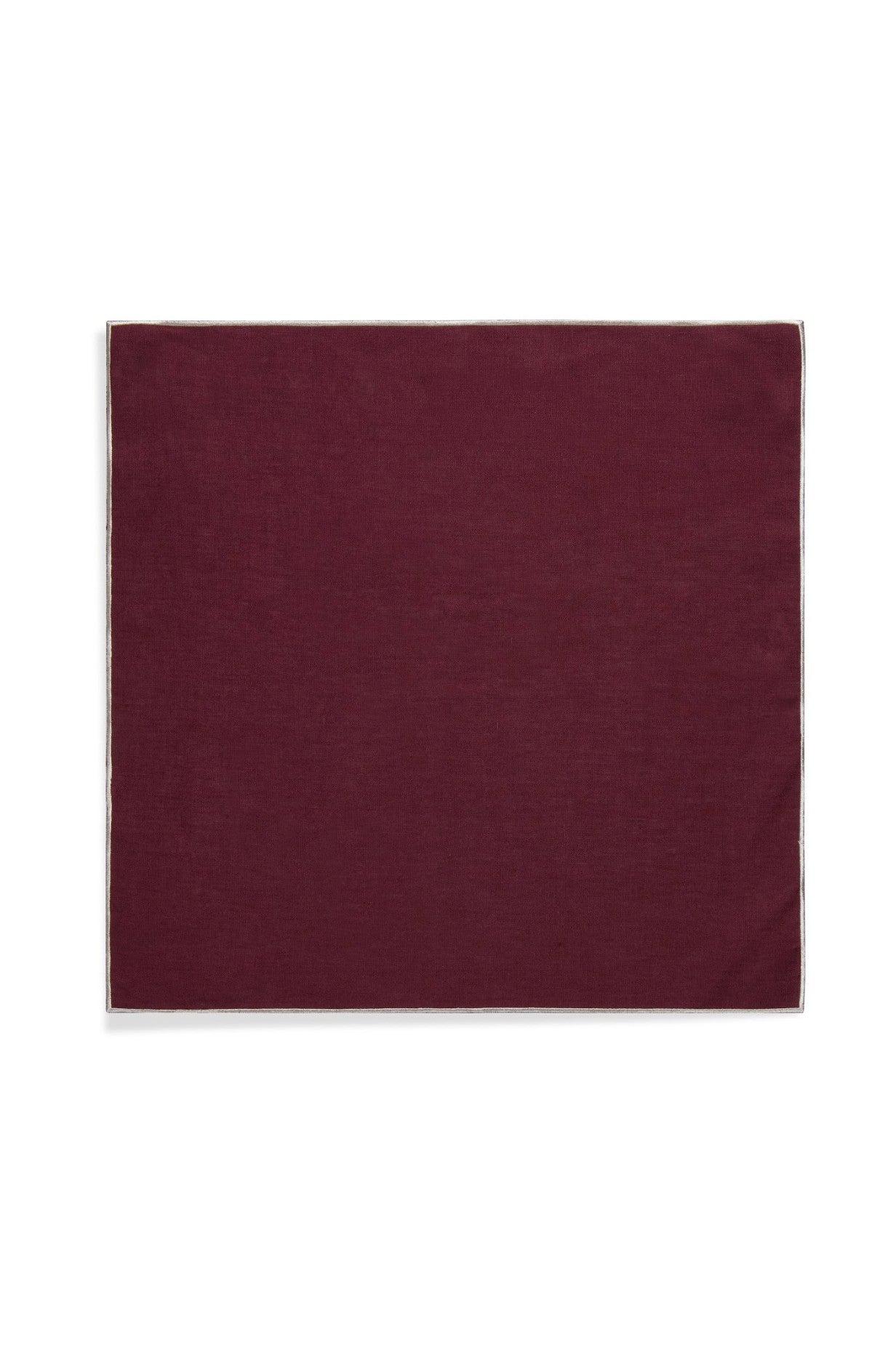 Margot Peçete, derin bordo keten kumaş ve zarif ekru kontrast biyesiyle öne çıkar. Tekli olarak satılır, karıştırıp eşleştirmek ya da zamansız bir şıklıkla sofistike bir sofra düzeni oluşturmak için idealdir.