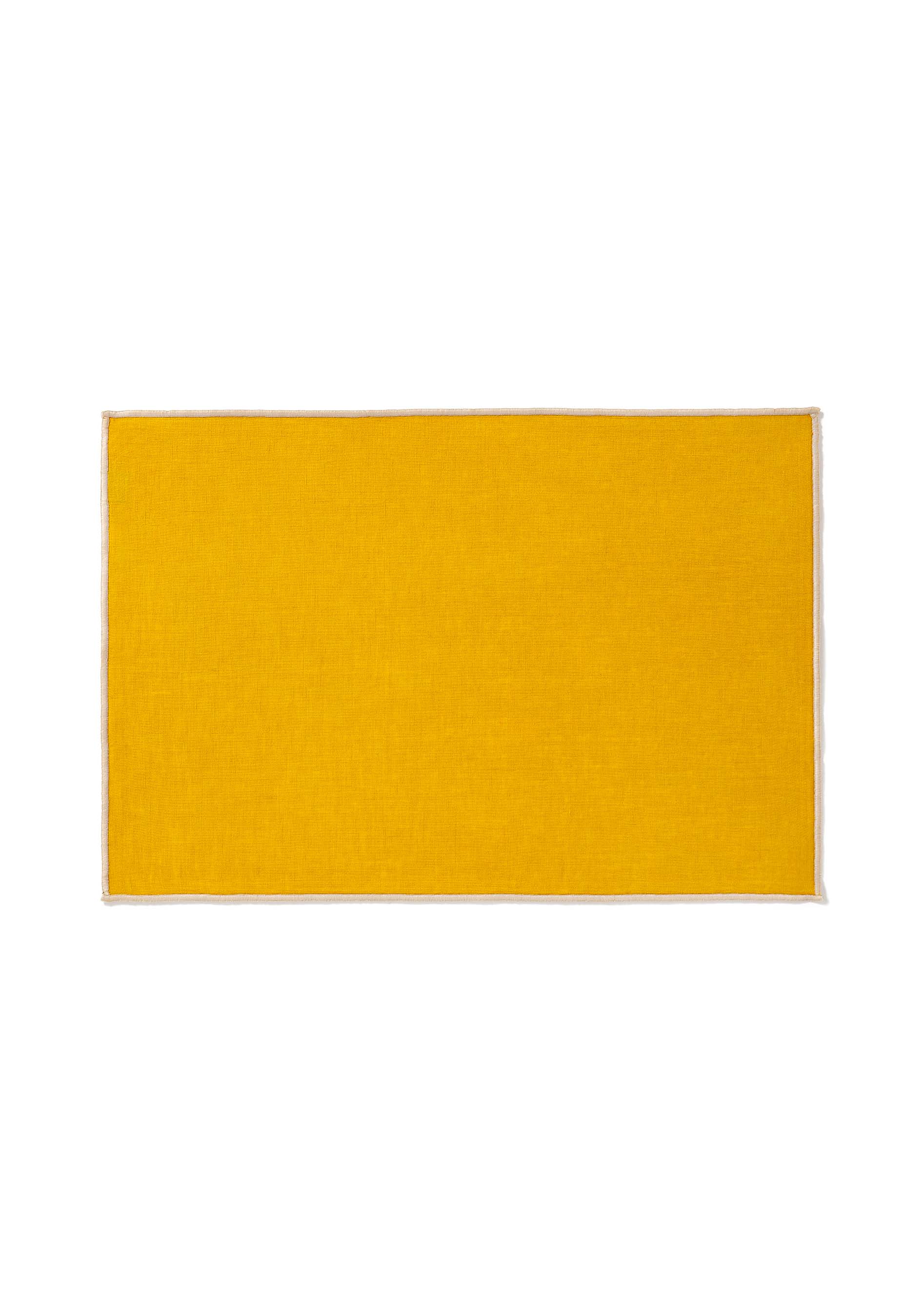 Margot Amerikan Servisi, sarı keten kumaş üzerine ince bej biye detayıyla tasarlanmıştır. Hem günlük sofralarda hem de özel davetlerde ferah, güneşten esinlenmiş bir görünüm sunar. Tekli olarak satılır.