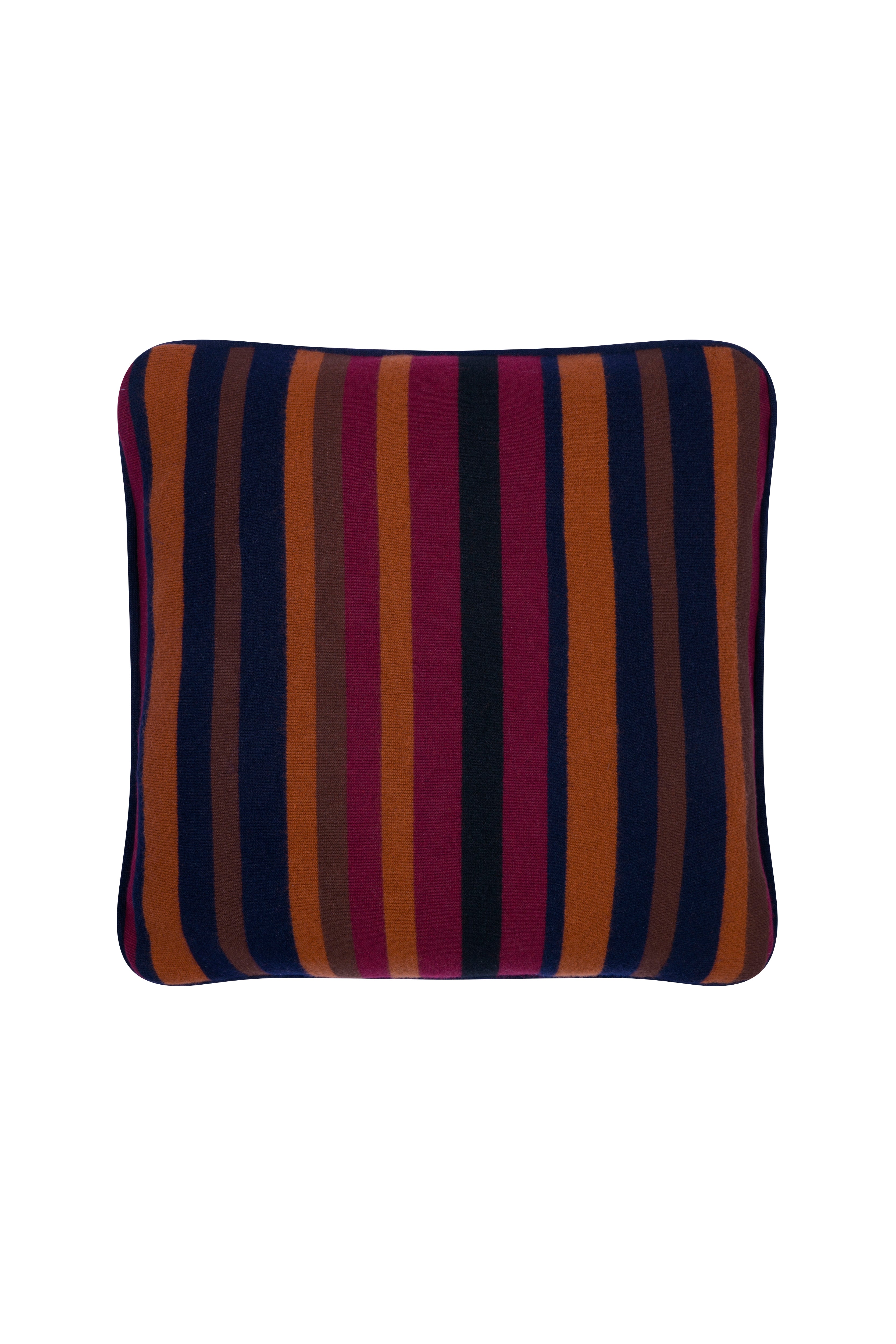 Maya Lacivert Karışım Yastık Kılıfı, derin lacivert zemin üzerine zengin renk vurgularıyla şerit desenini sofistike bir görünüme kavuşturur. Pürüzsüz dokusu ve dengeli renk paleti sayesinde düz renkli yastıklarla veya diğer desenlerle kolayca kombinlenebilir, çok yönlü bir seçenek sunar.