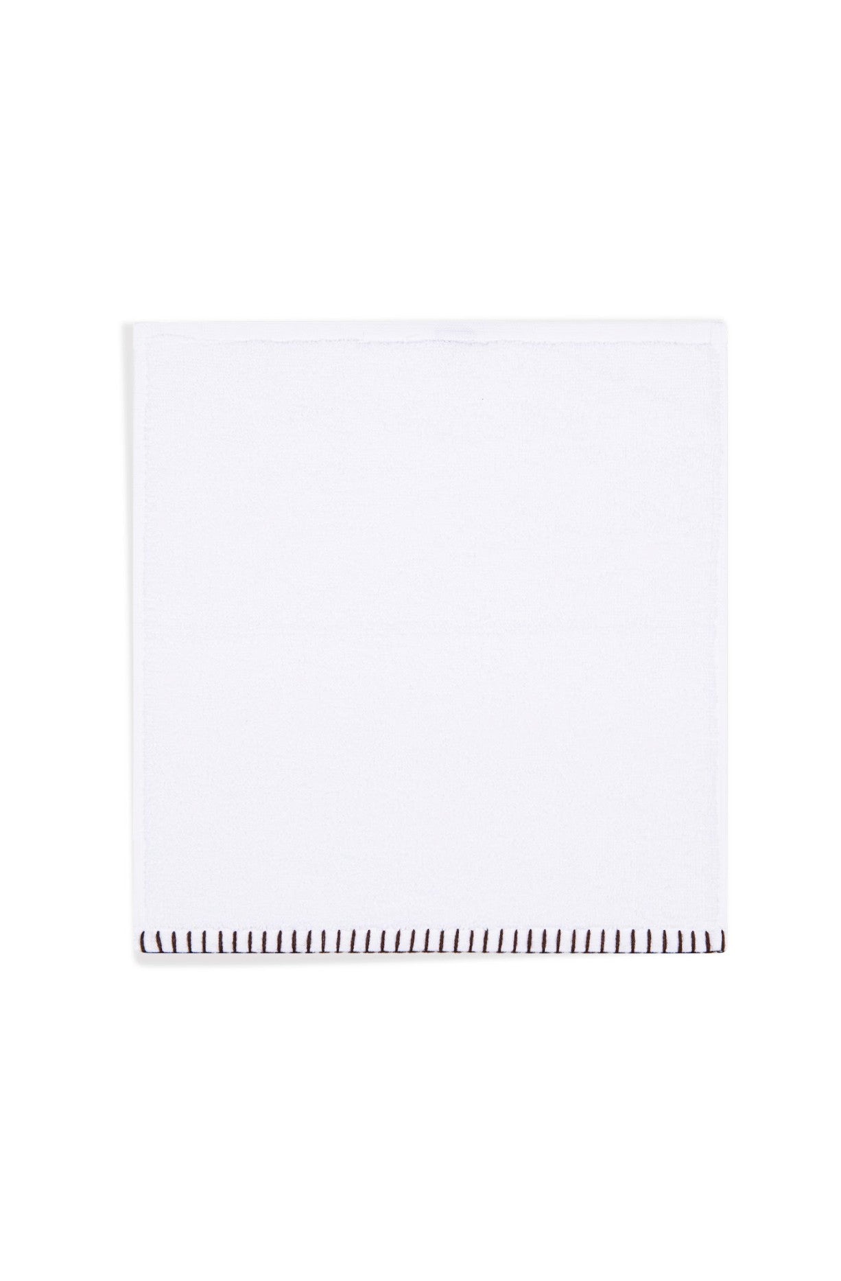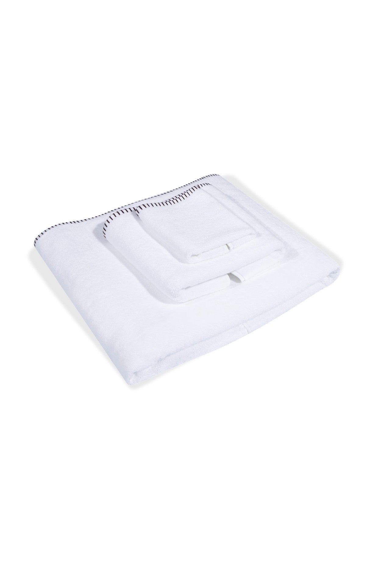 Beyaz Üçlü Havlu Seti, Kahverengi Çoban Dikiş Detaylı