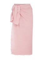 Sienna Şal ve Üstlük, kırışık dokulu pembe pamuk kumaştan üretilmiştir. Hafif ve nefes alabilen yapısı, yumuşak dokusuyla tamamlanır. Çok yönlü kullanıma uygun olarak tasarlanan bu parça, omuzlara şal gibi alınabilir ya da bele sarılarak pareo tarzında kullanılabilir; böylece hem stil hem de günlük kombinlerde farklı şekillerde değerlendirilebilir.