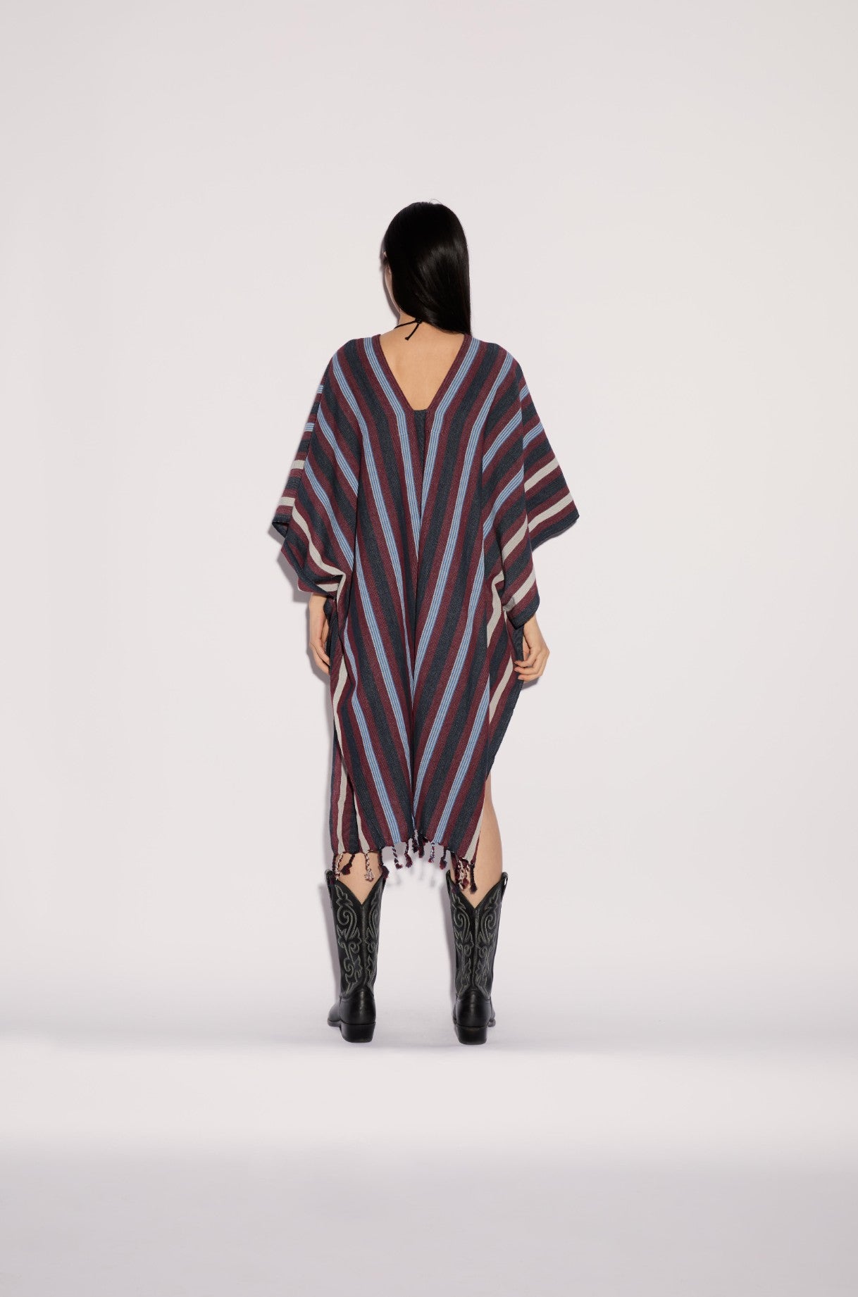 Kahi Kaftan, pamuktan üretilmiş olan hafif ve pelerin tarzında bir parçadır. Çok renkliliği, doku ve canlılık katar. Açık ve rahat silueti sayesinde kat kat giyime uygundur—geleneksel bir dokunuşu rahat ve modern bir tavırla harmanlar.