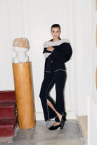 Çoban Dikiş Detaylı Siyah Uzun Kollu Üst