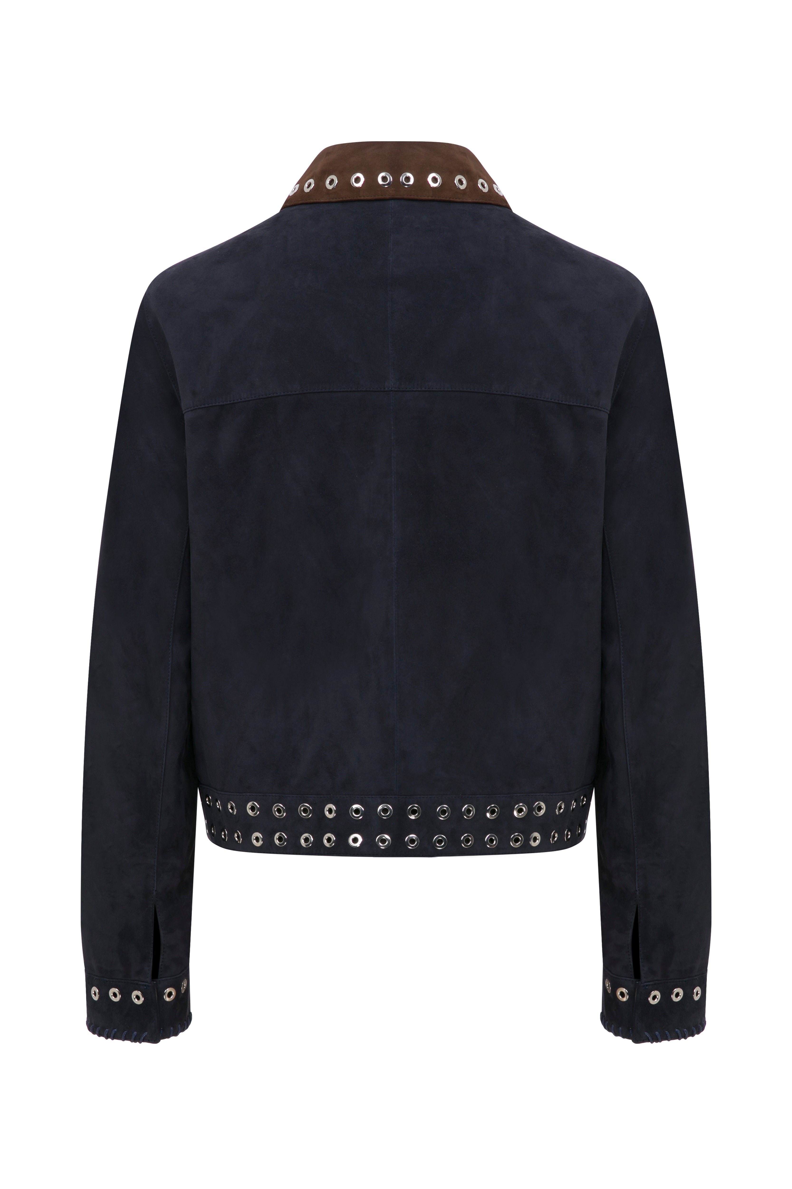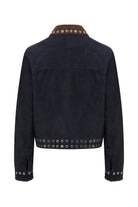 Cepli Nakışlı Ve Metal Halkalı Yakalı Süet Ceket