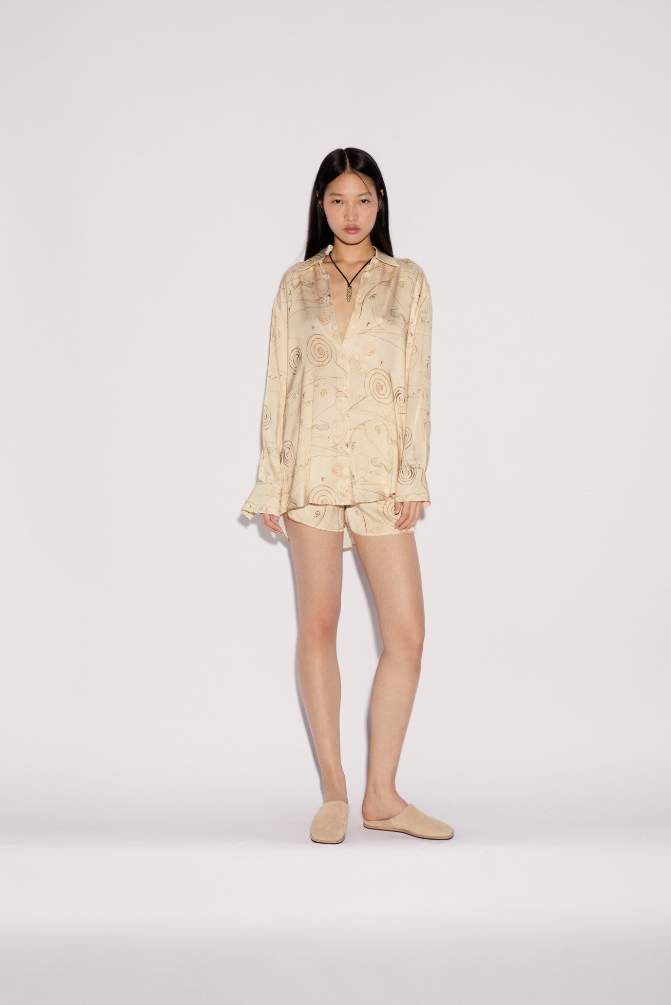 Map Gömlek, klasik düğmeli tasarımıyla tamamlanan canlı çok renkli bir desene sahiptir.