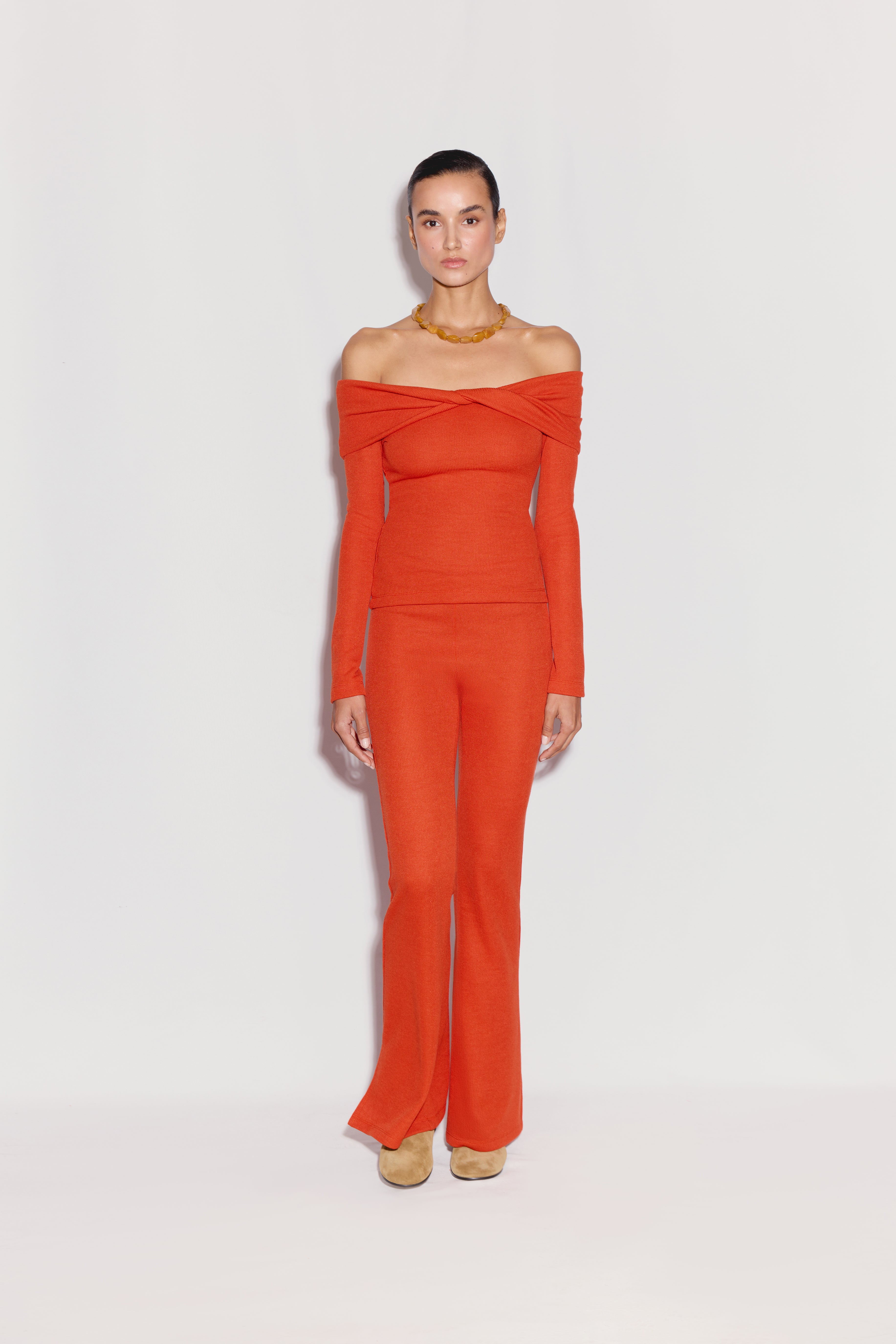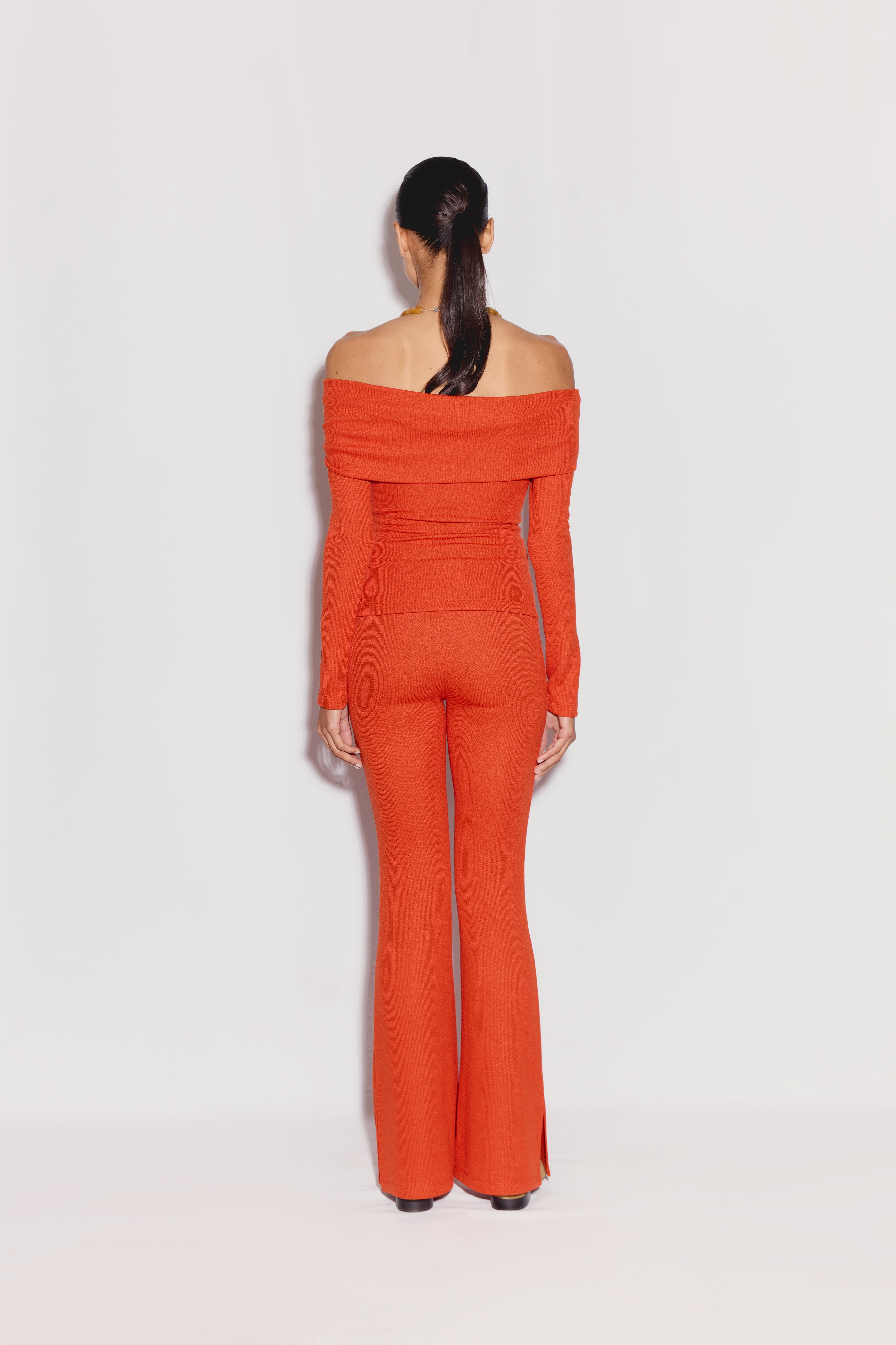 Rhea Pantolon, sezonun iddialı turuncu tonunda bol paça bir pantolondur. Yapılandırılmış ama esnek pamuk-polyester karışımından üretilmiştir, yüksek belden oturur ve silüeti uzatan akıcı ve bol paça kesime sahiptir. Kesimi, net terziliği rahat ve modern bir havayla dengeler.