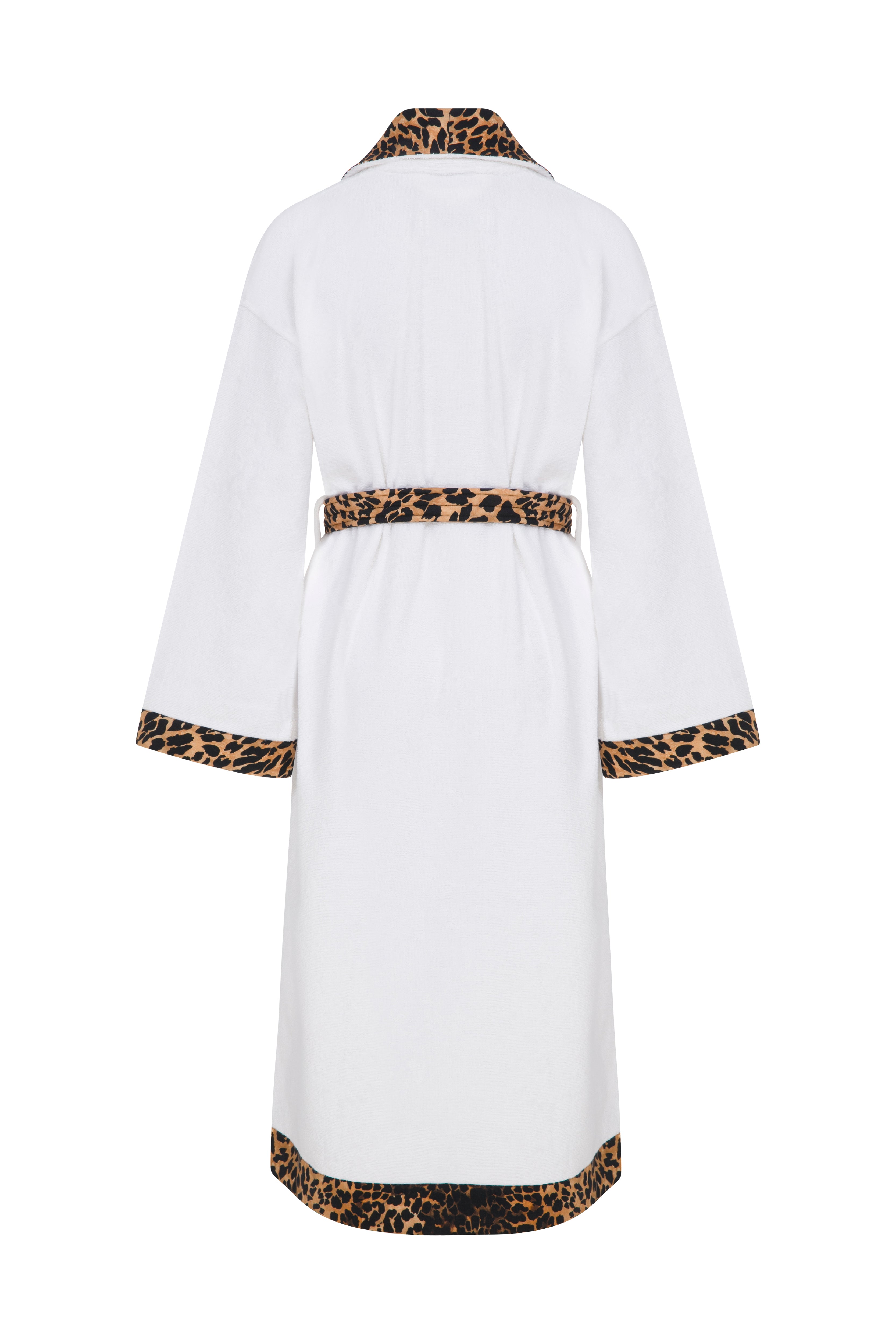Leopar Desen Şeritli Bornoz