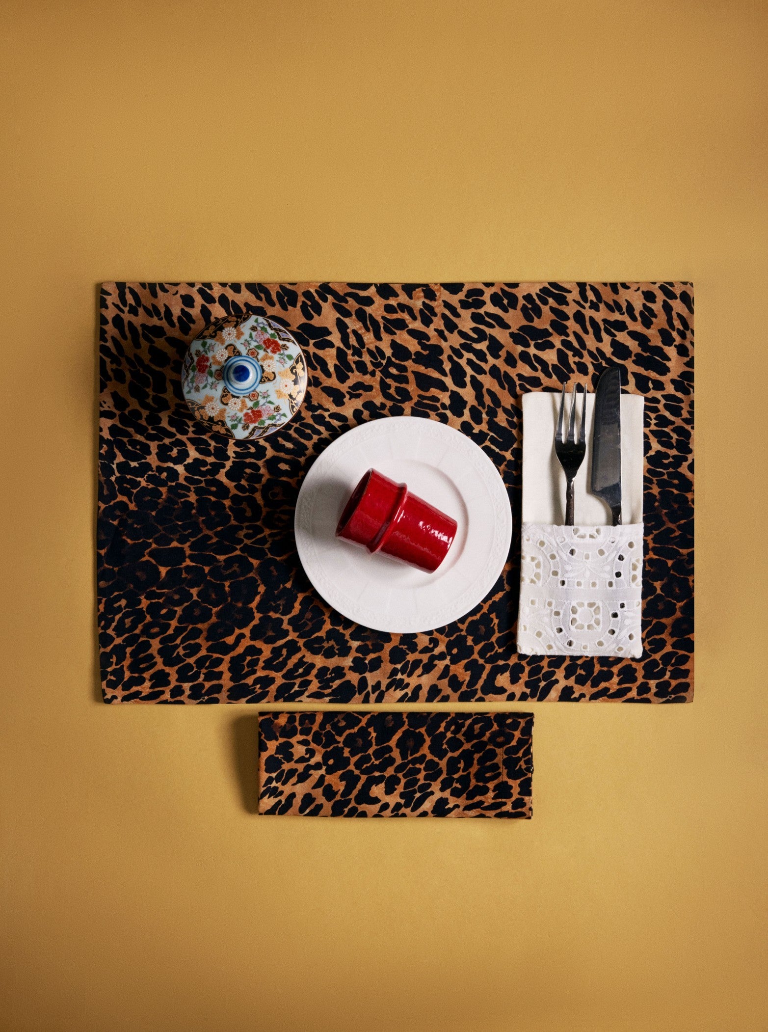 Nyra Amerikan Servis, dikkat çekici leopar deseniyle sofrada iddialı bir duruş sergiler. Canlı yüzey deseni, ister sade ister kutlama havasındaki sofralar olsun, her ortama karakter ve enerji katar. İşlevsellik ile tasarımı buluşturan bu parça, günlük sofraları dahi zarif bir şekilde öne çıkarır.