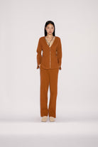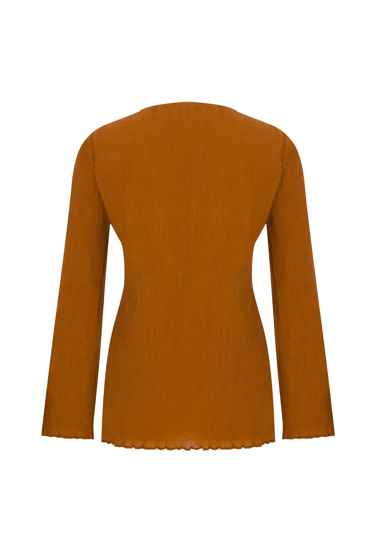 Cyrus Üst, sıcak karamel tonundaki kırışık görünümlü pamuktan üretilmiştir. Rahat silueti ve doğal dokusuyla günlük kullanım için idealdir. Hafif yapısı ve vücuda zarifçe oturan duruşuyla zahmetsiz bir şıklık sunar.