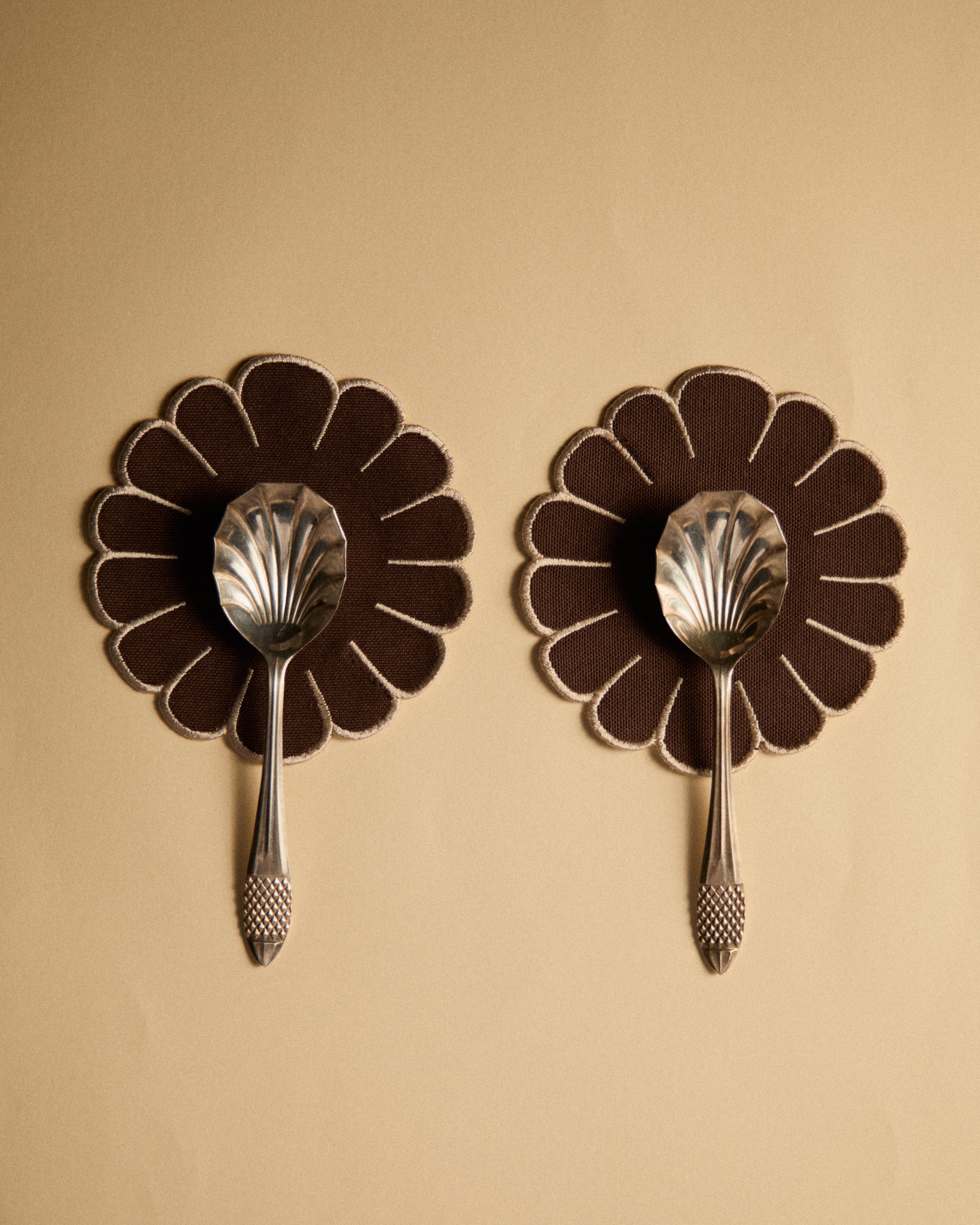 Ekru Bardak Altlığı Seti, Kahverengi Biye Detaylı