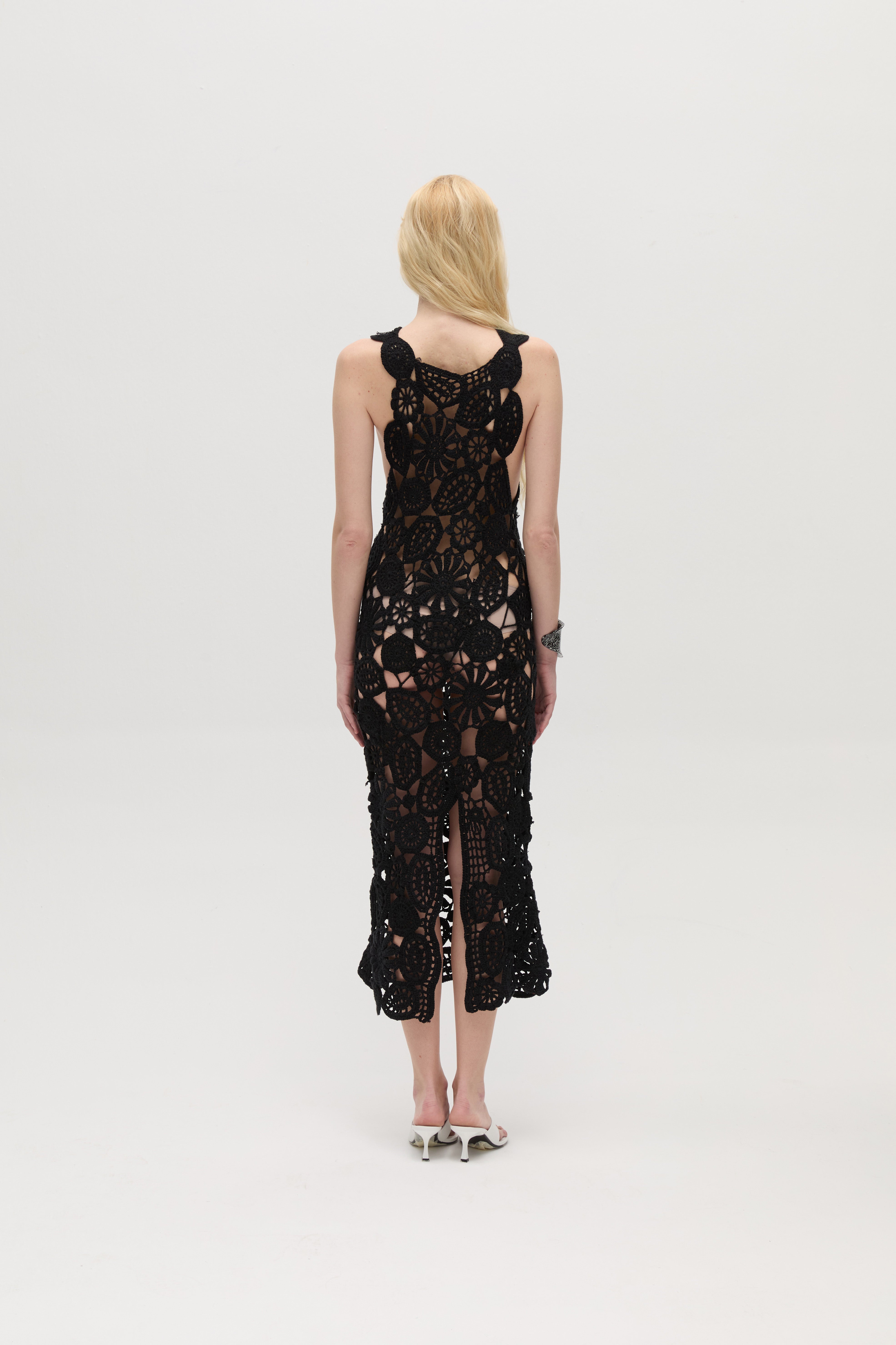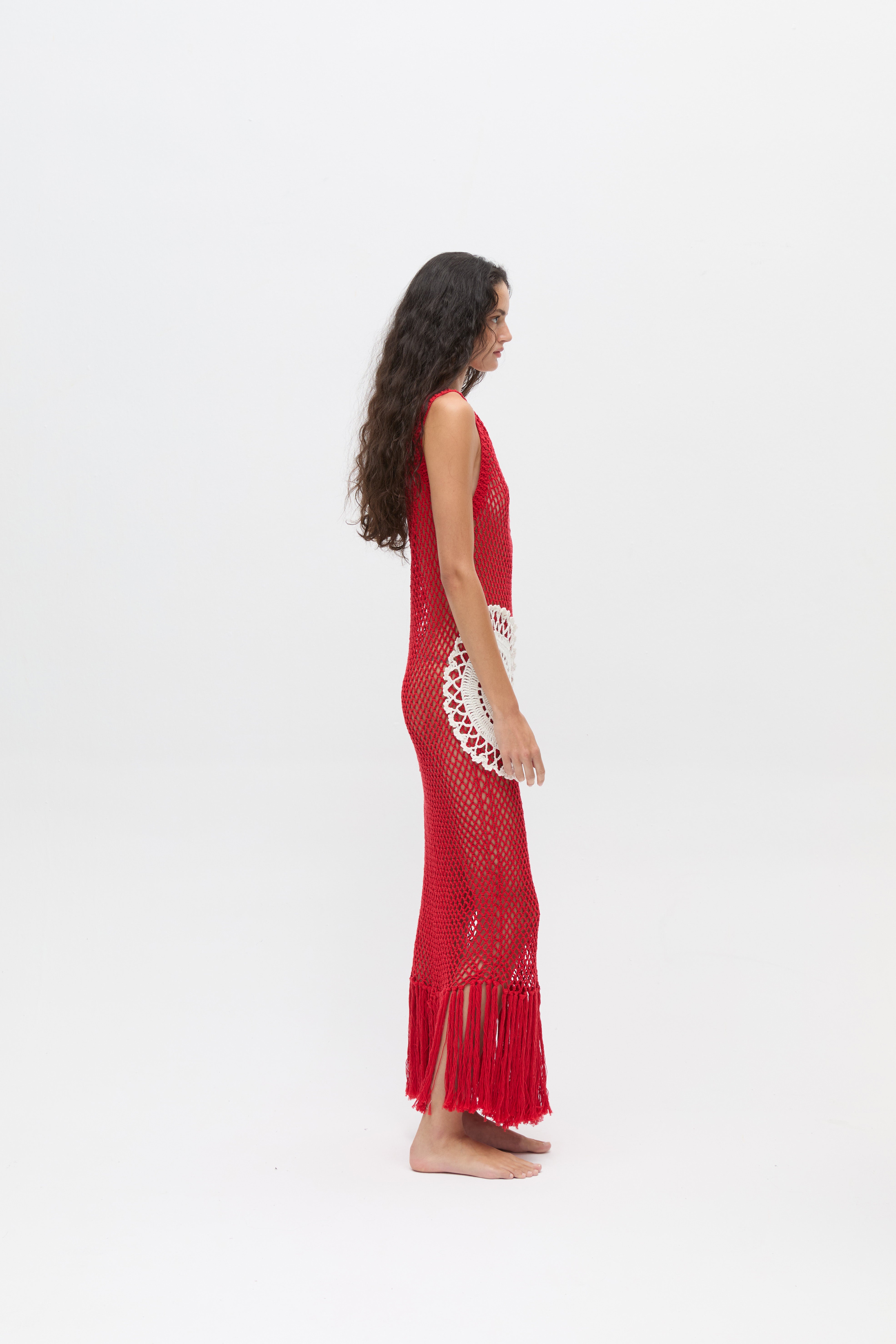 El Yapımı Kroşe Kırmızı Maxi Elbise
