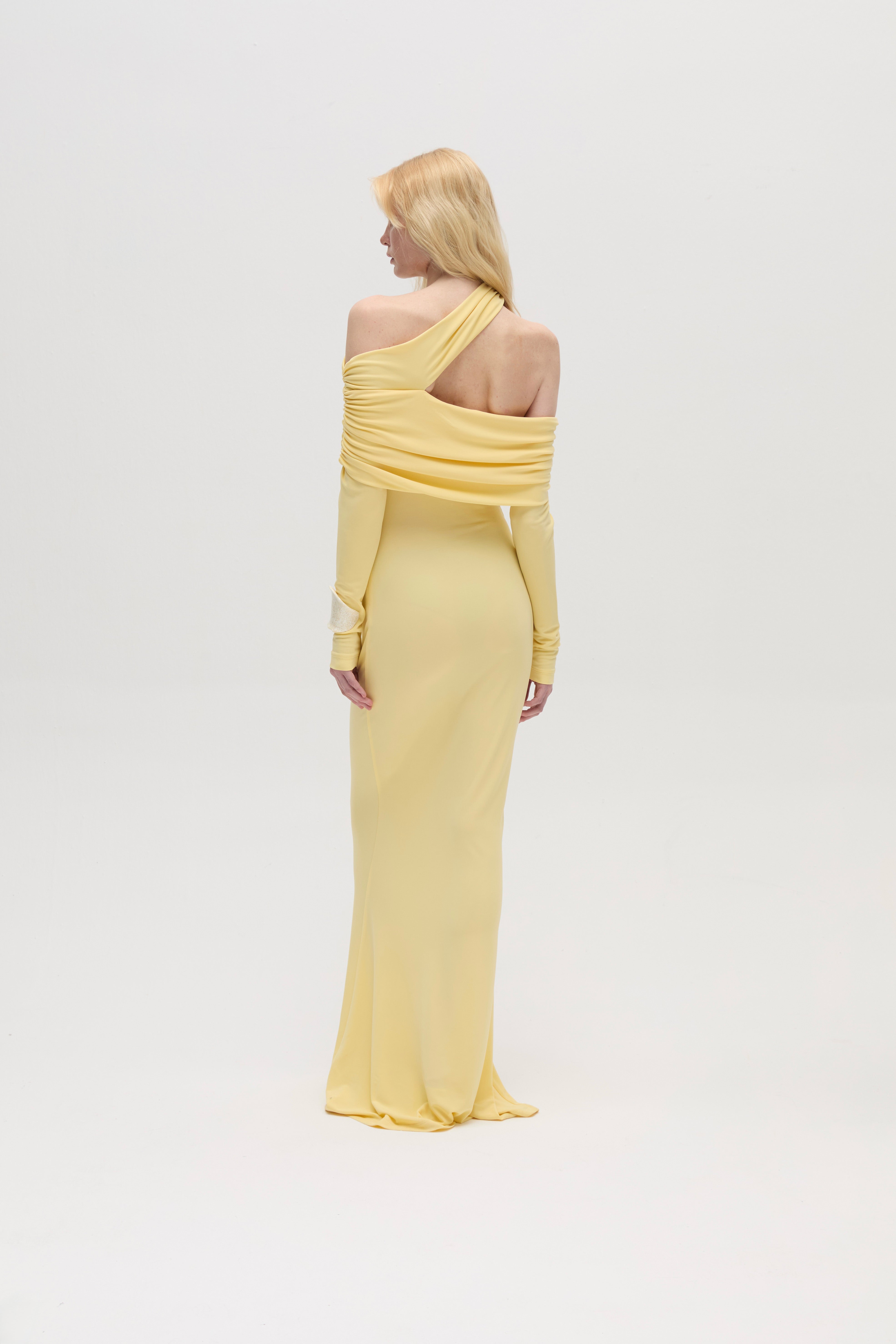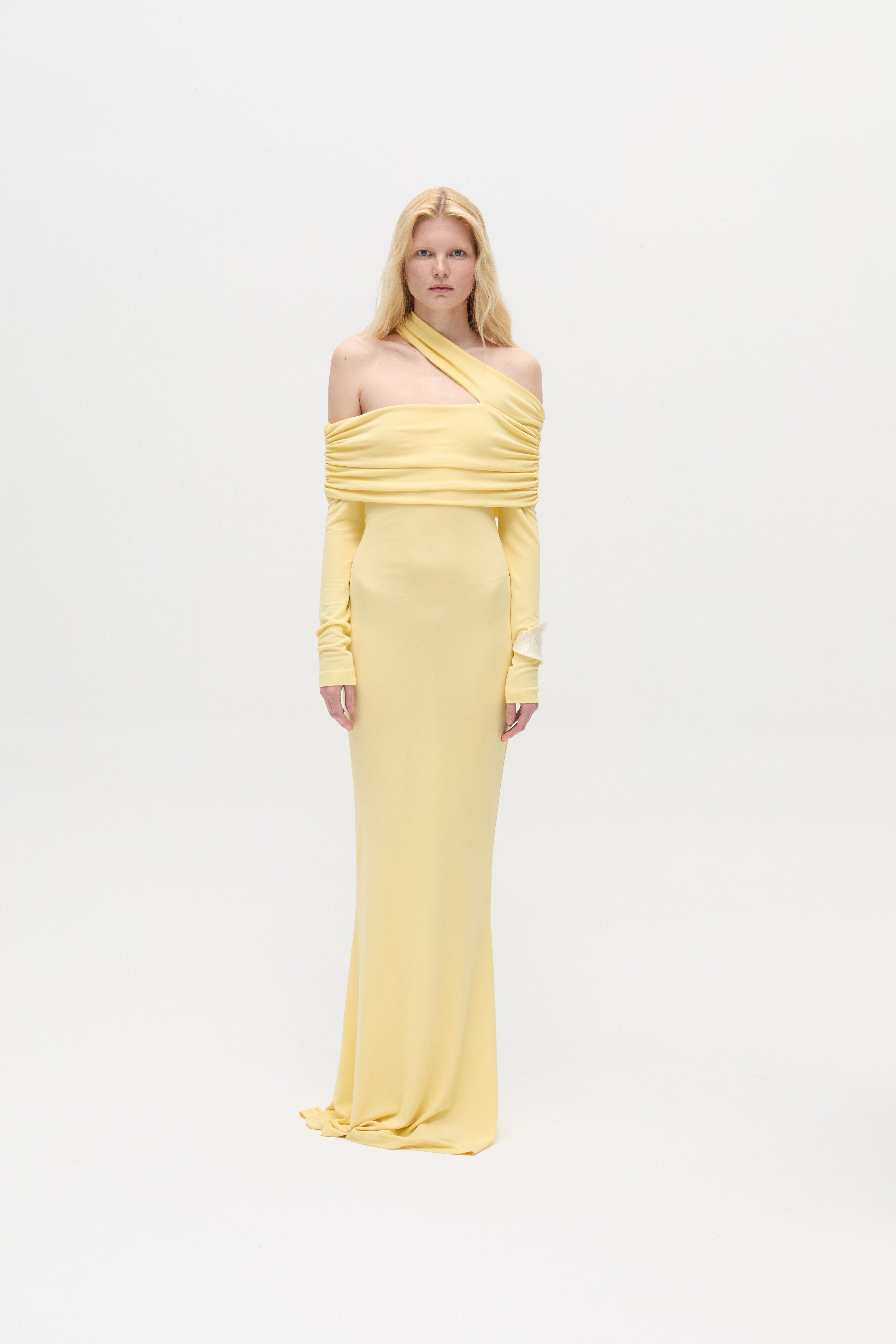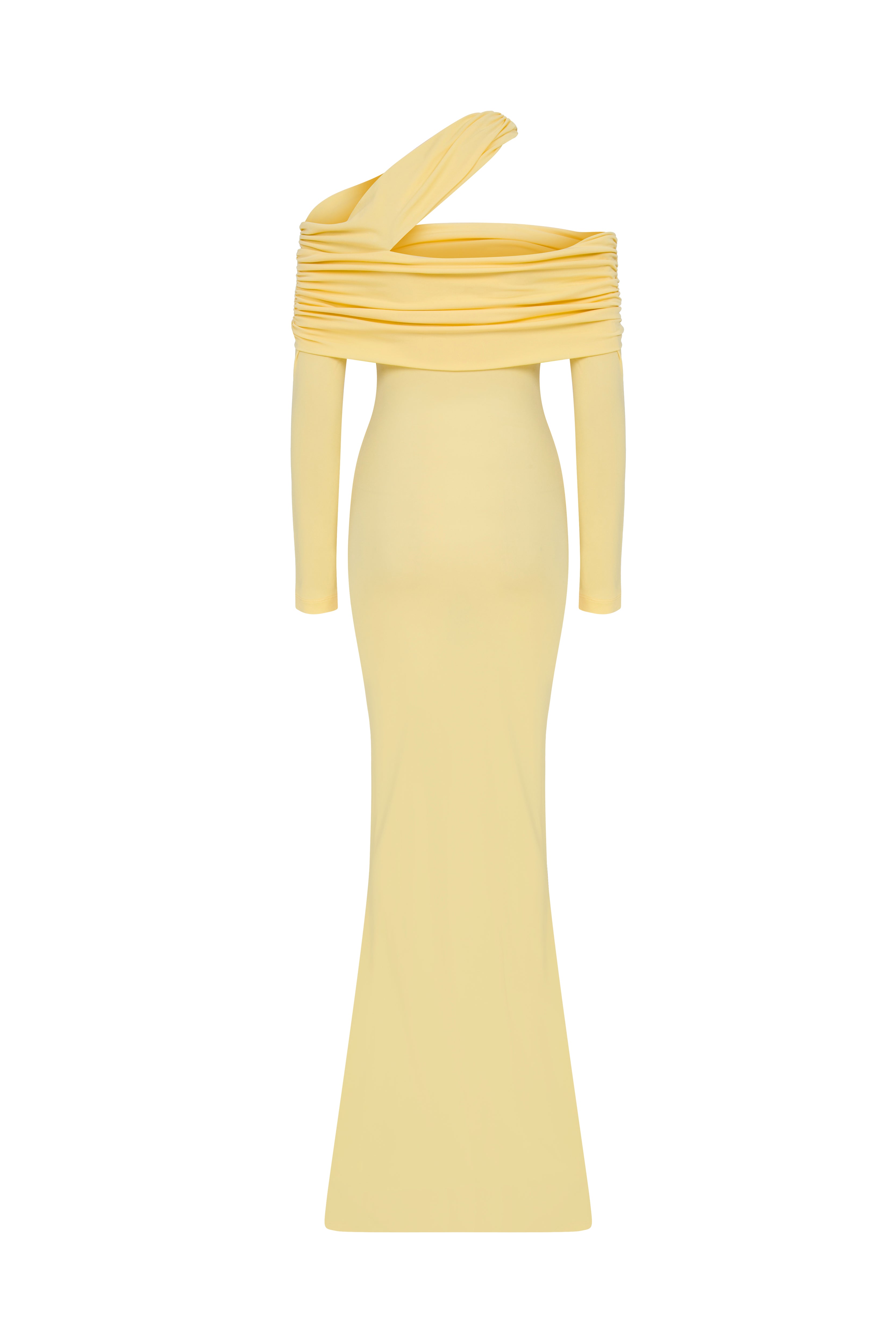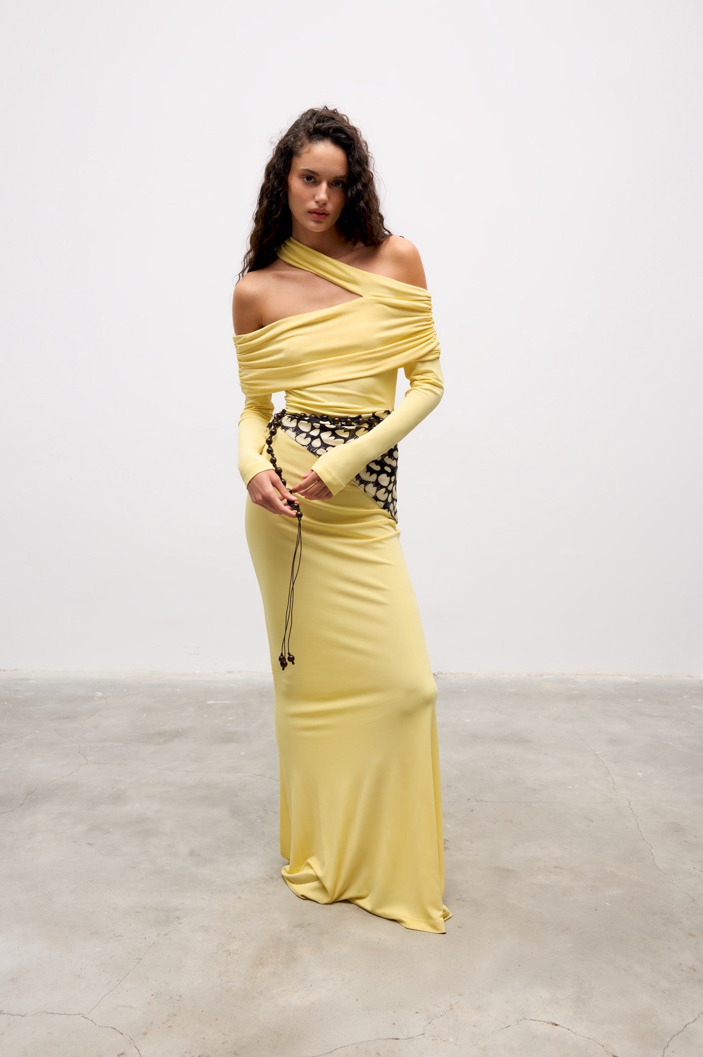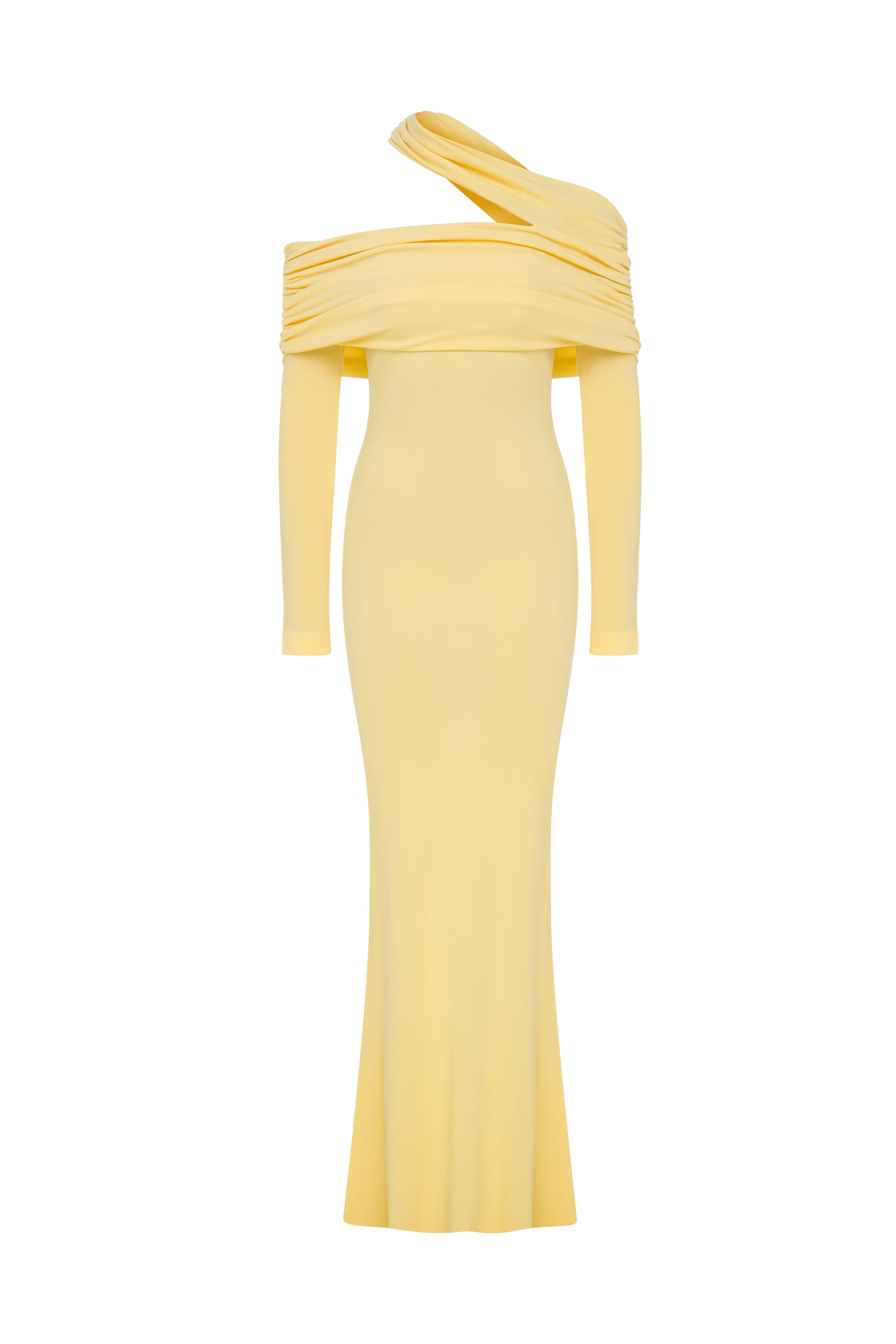 SIA – Düşük Omuzlu Ve Uzun Kollu Sarı Maxi Elbise
