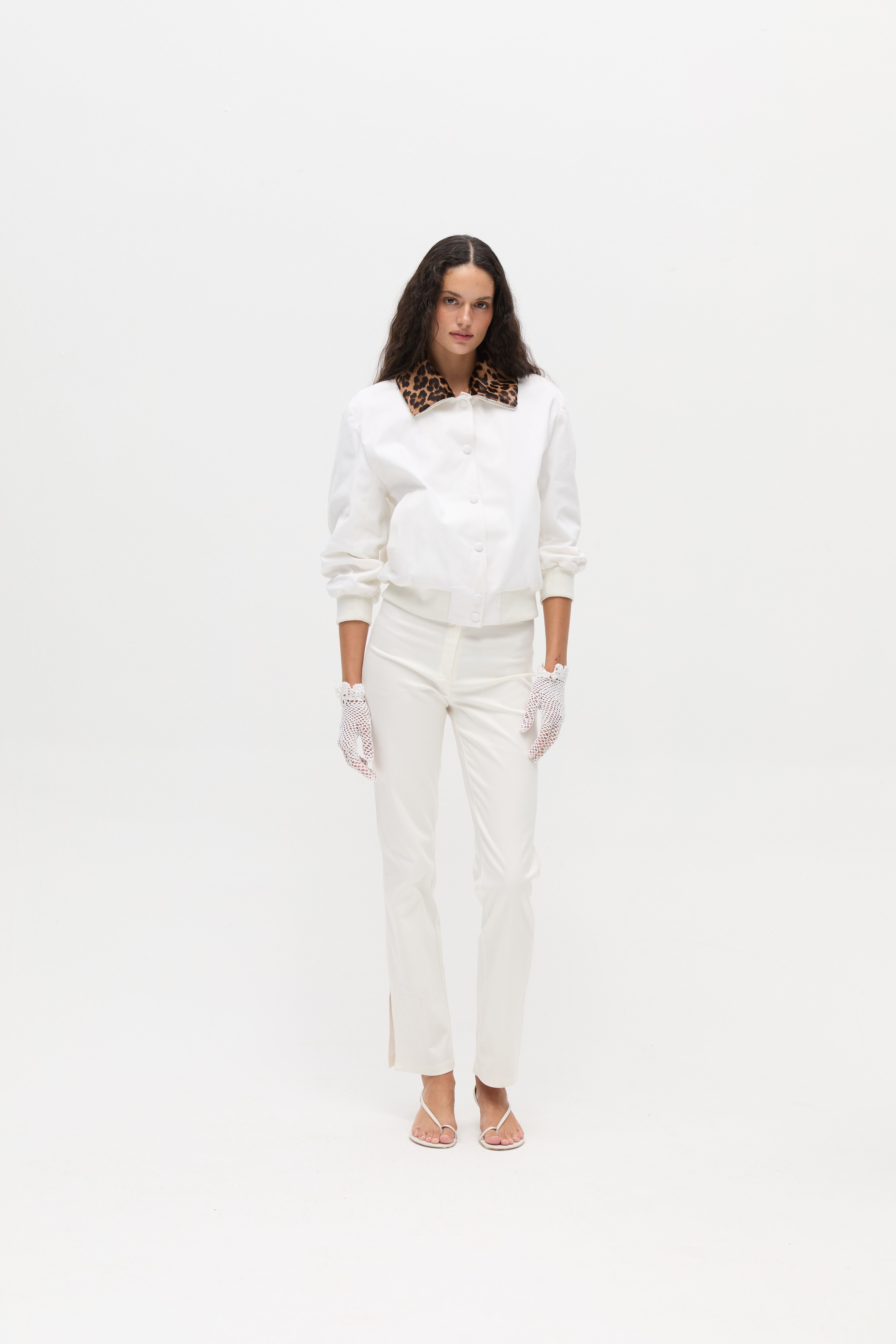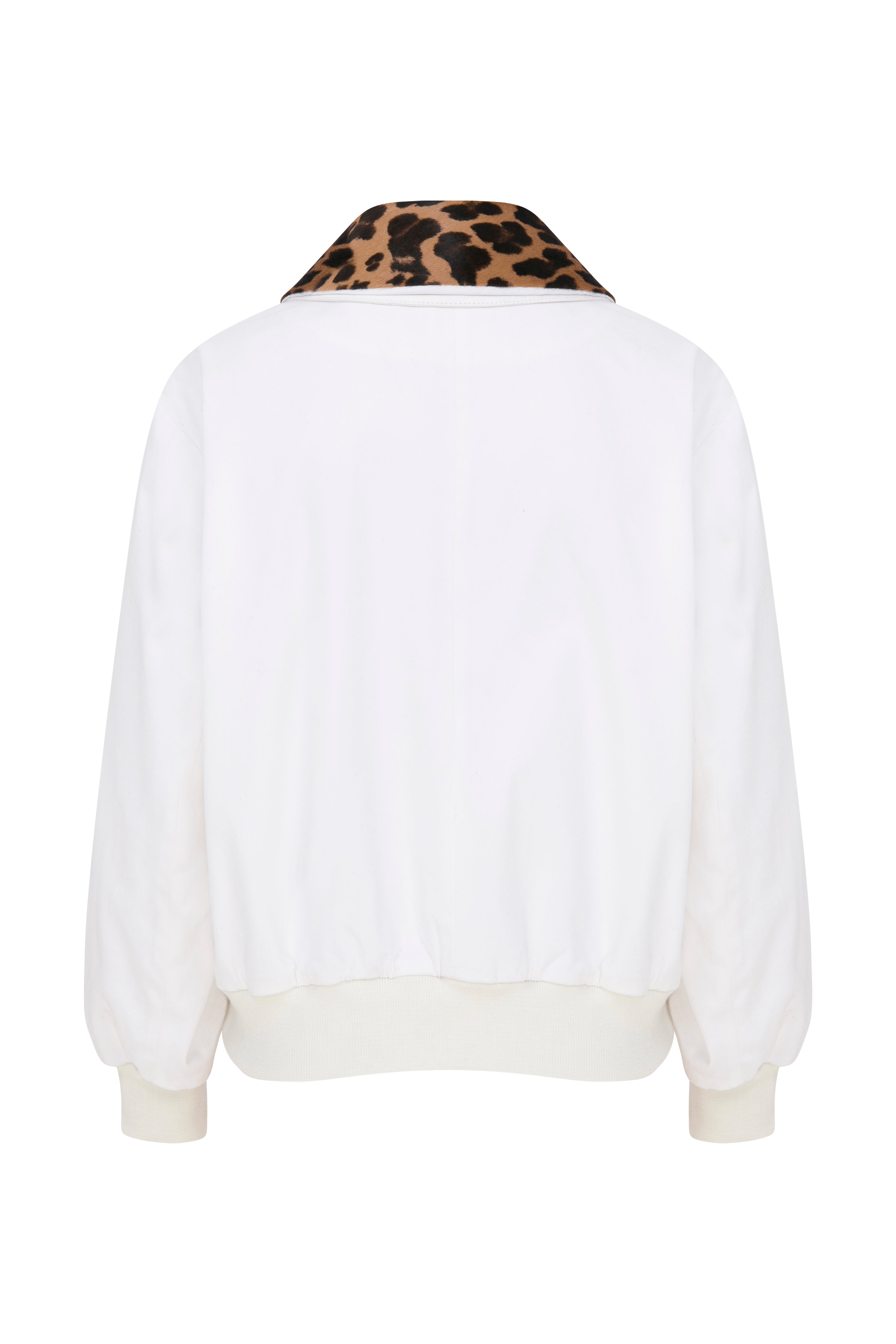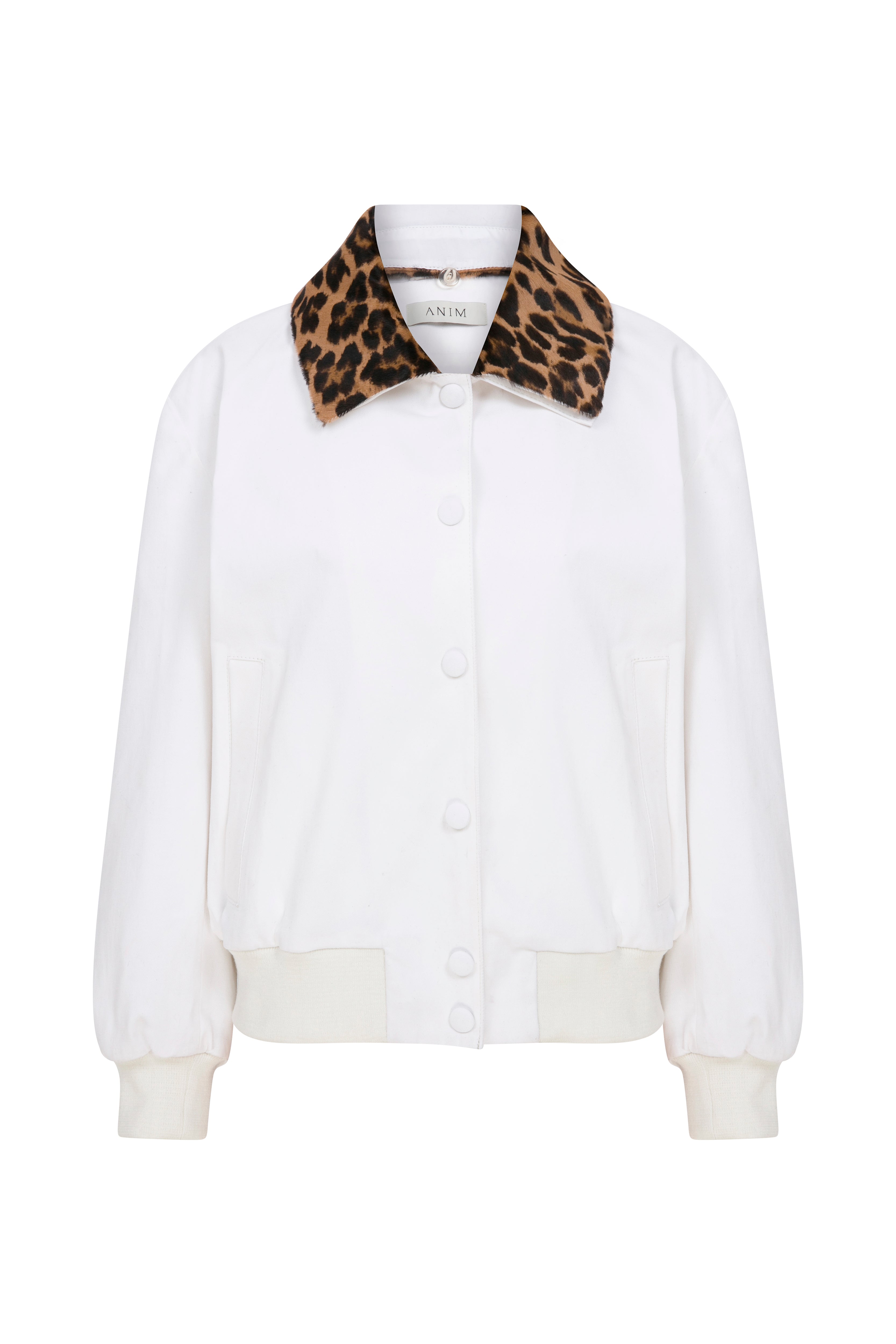 Değiştirilebilir Yaka Detaylı Beyaz Gabardin Bomber Ceket