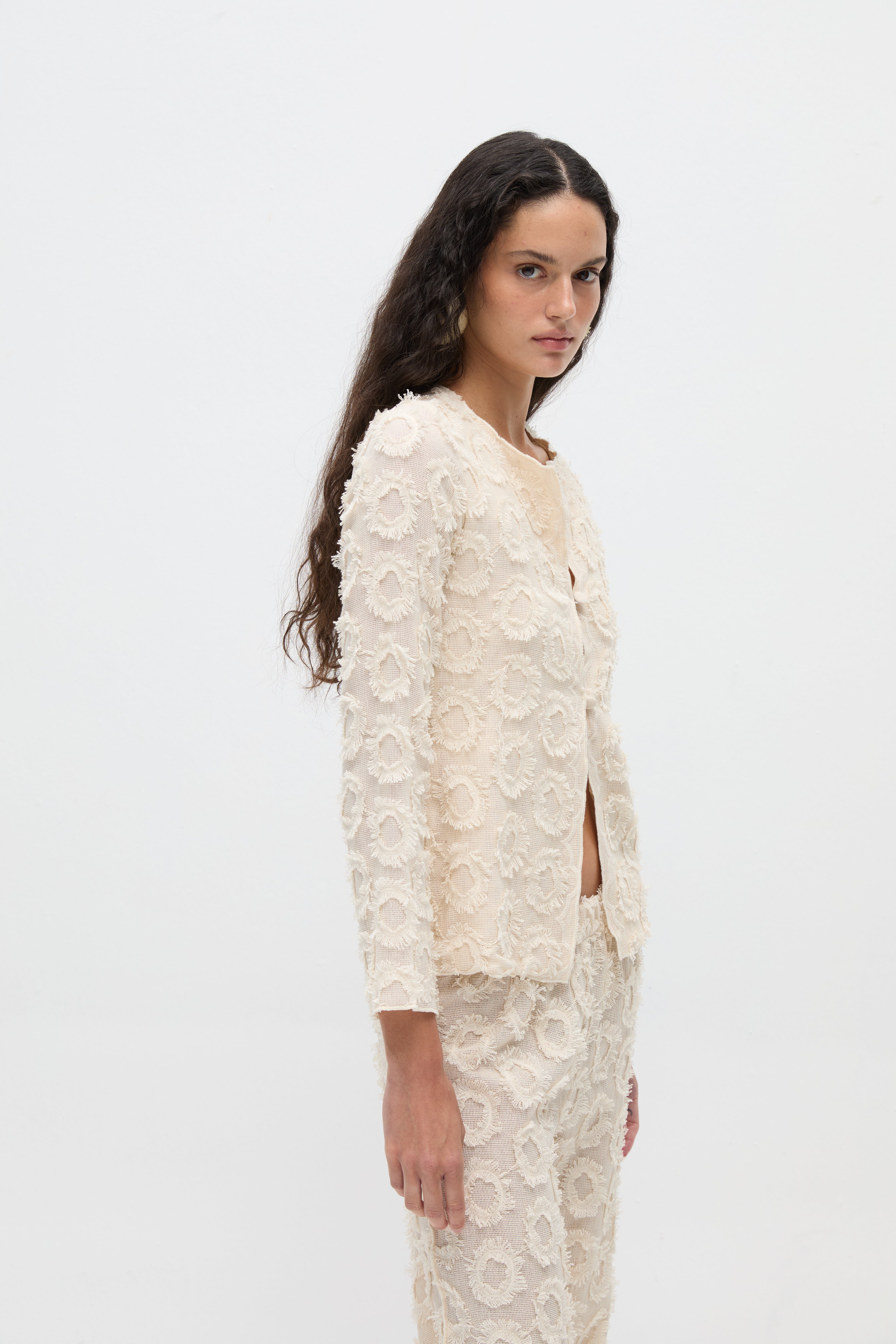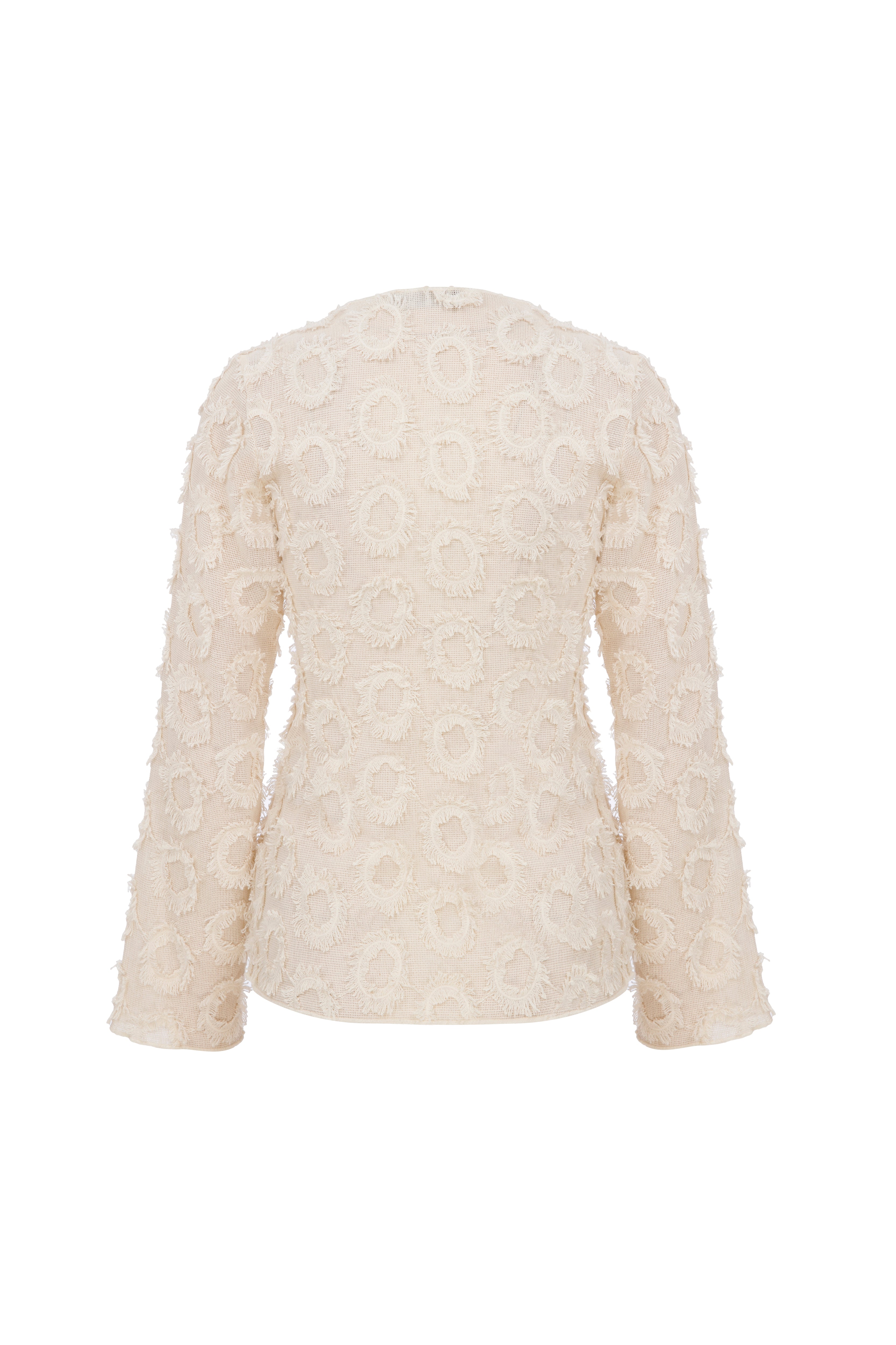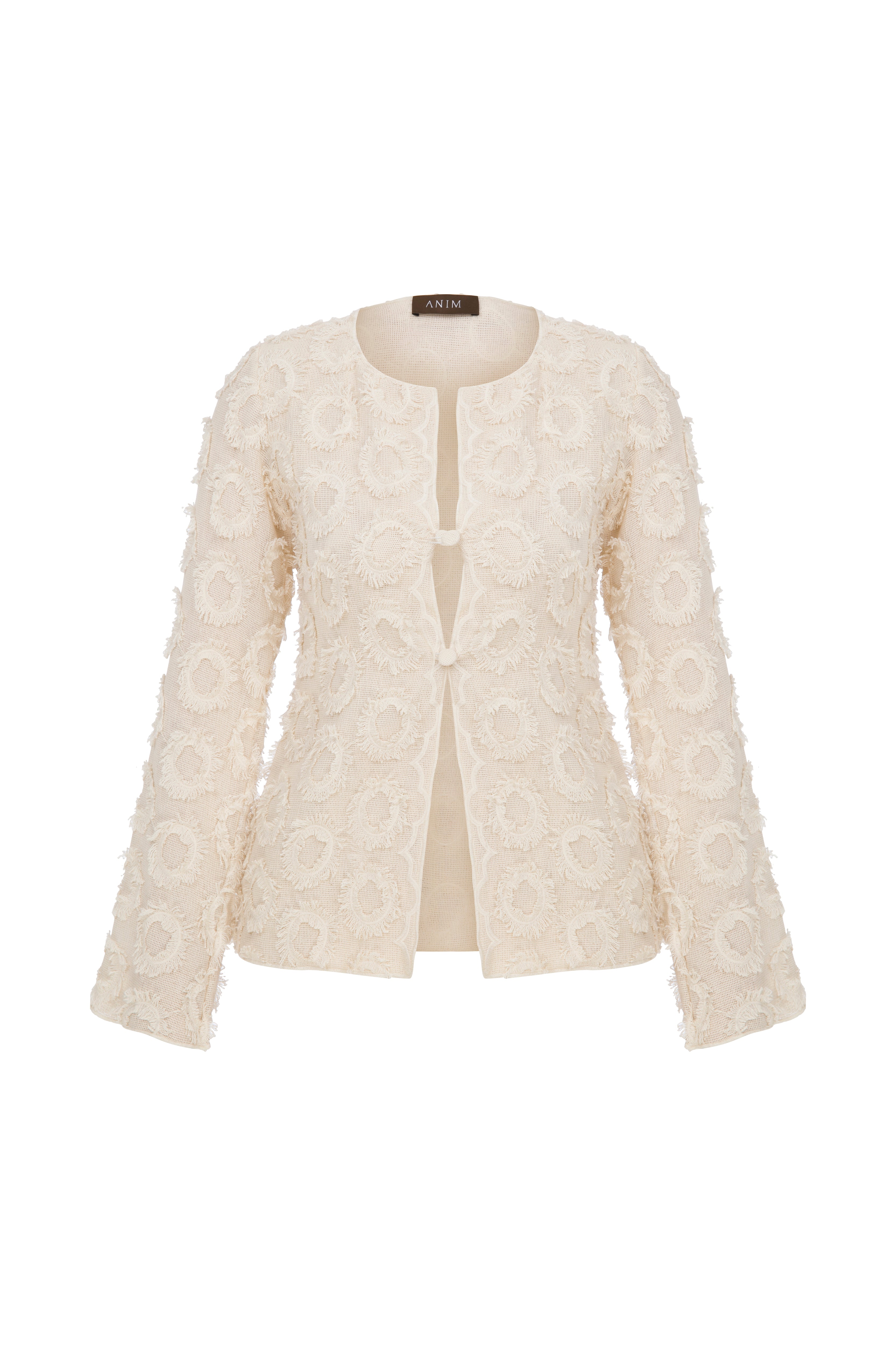 Değiştirilebilir Yaka Detaylı Beyaz Gabardin Bomber Ceket