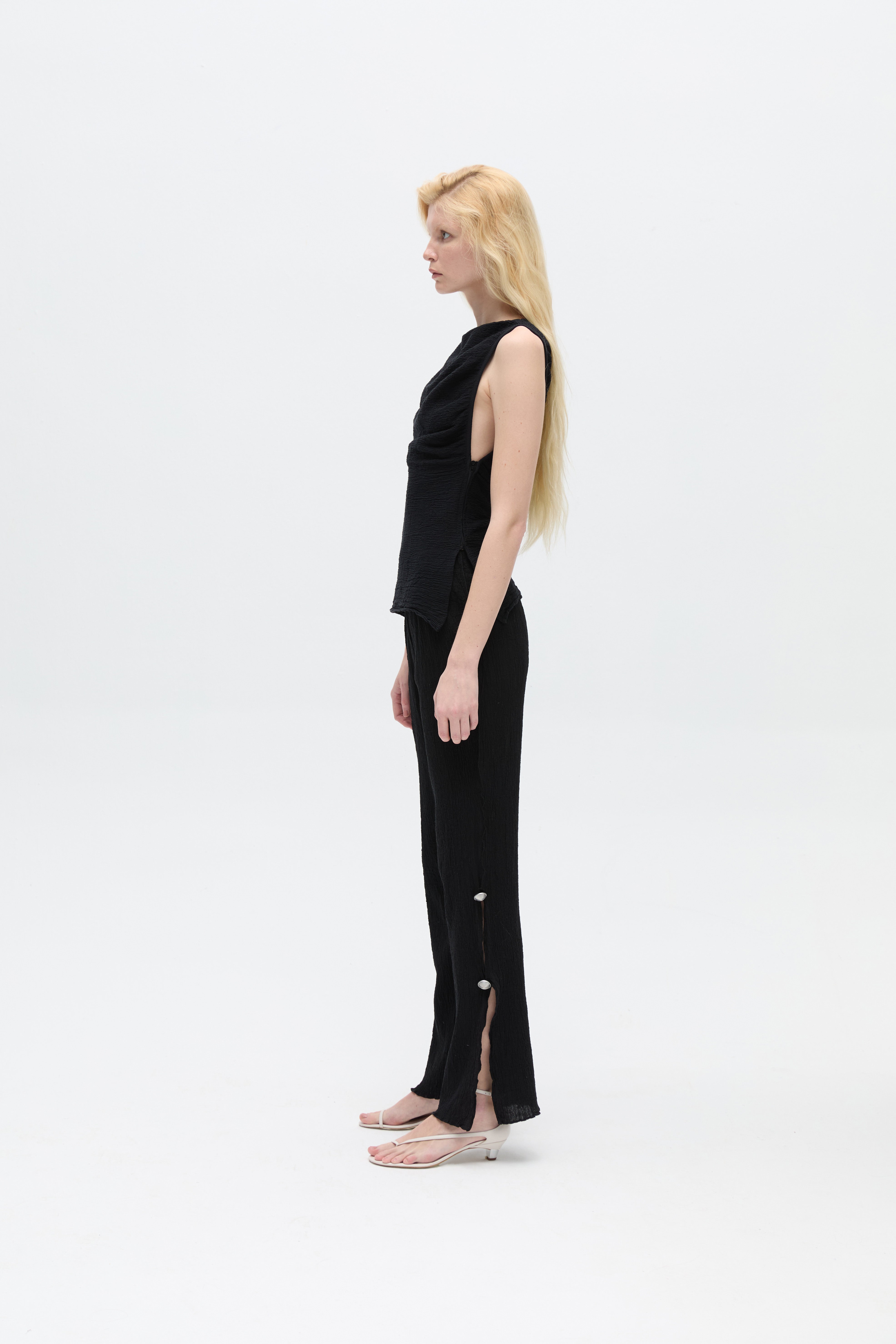 SIENNA – Kırışık Dokulu Ve Kolsuz Siyah Üst
