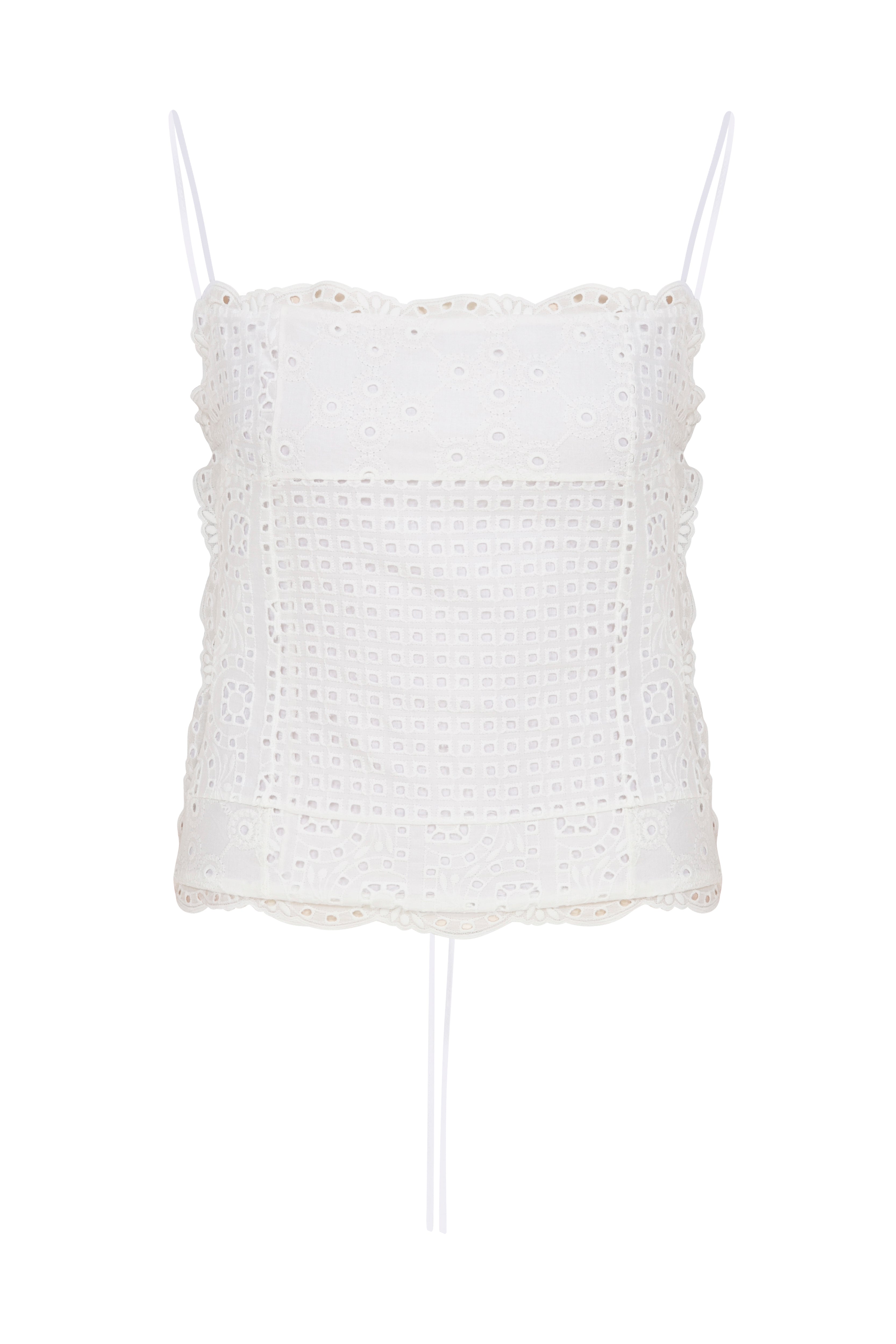 Arkası Bağcık Detaylı Ve Nakışlı Beyaz Büstiyer
