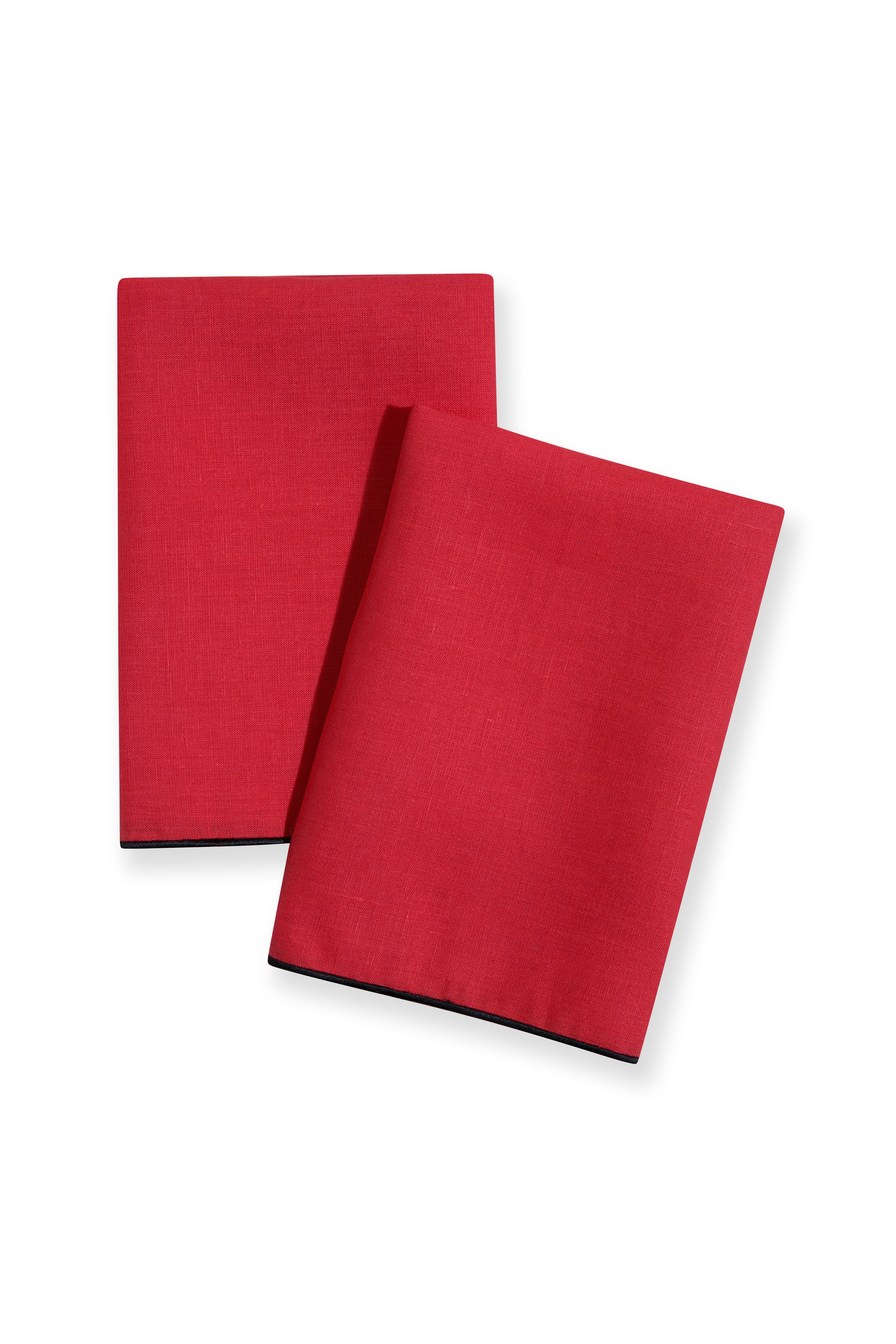 Margot Peçete, keten kumaştan üretilmiş olup dikkat çekici kırmızı tonu ve kenarlarını çevreleyen siyah biye detayıyla öne çıkar. Tek olarak satılan bu kare peçete, günlük kullanıma işlevsellik kazandırırken sofraya güçlü bir vurgu ekler.