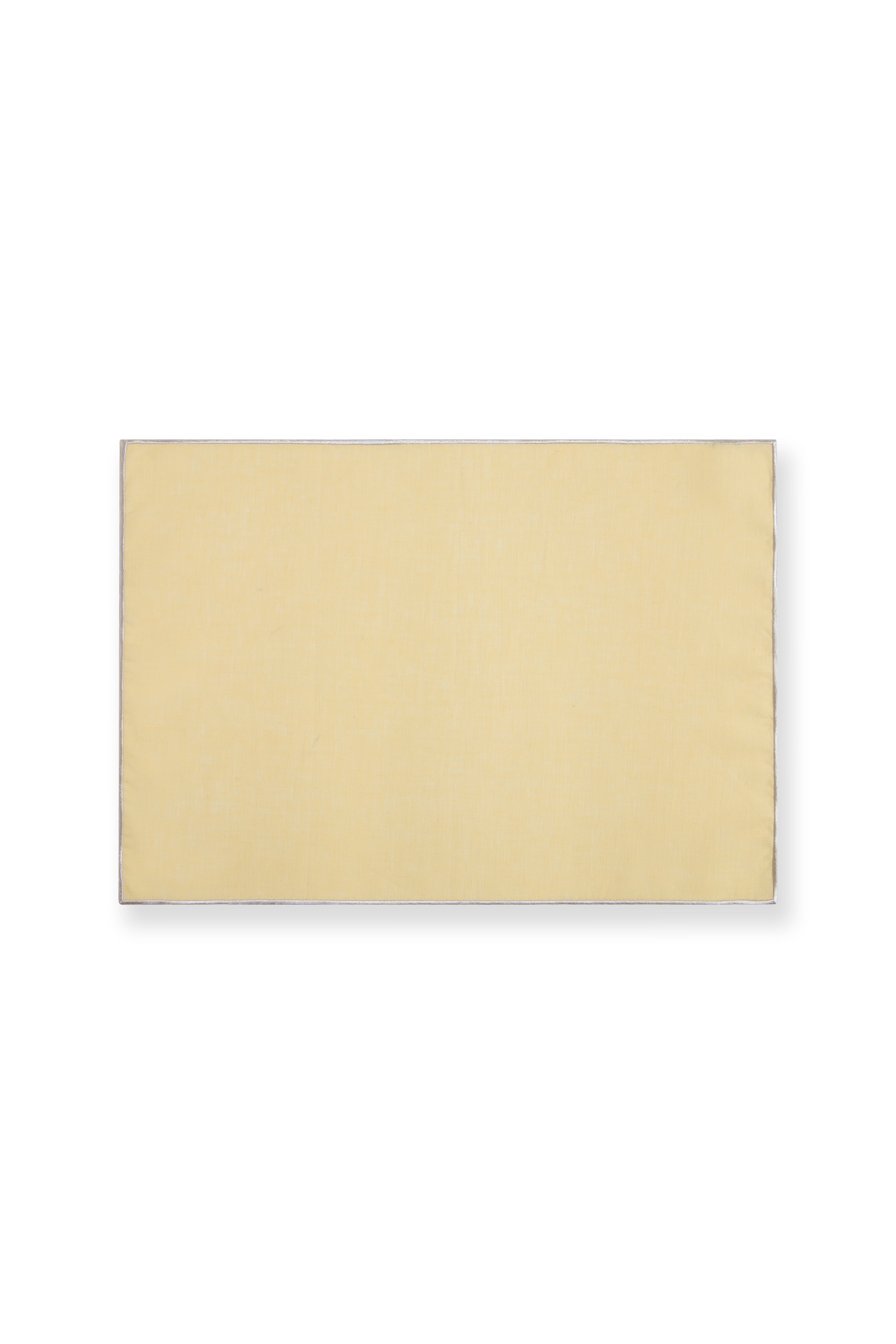 Margot Amerikan Servis, keten kumaştan üretilmiş olup sıcak toprak sarısı tonuyla zarif bir görünüm sunar. Kenarlarında yer alan ince gümüş biye detayıyla tamamlanan dikdörtgen formu, rengi ve detayları arasında modern bir denge kurar. Katmanlı sofralar için çok yönlü bir zemin oluşturur.