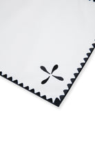 Sora Amerikan Servis, klasik dikdörtgen formu cesur nakış detayları ve kontrast kenar çerçevesiyle yeniden yorumlar. Siyah-beyaz renk paleti ve net çizgileriyle sofistike bir arka plan oluşturarak sofradaki düzenin zarafetle öne çıkmasını sağlar.