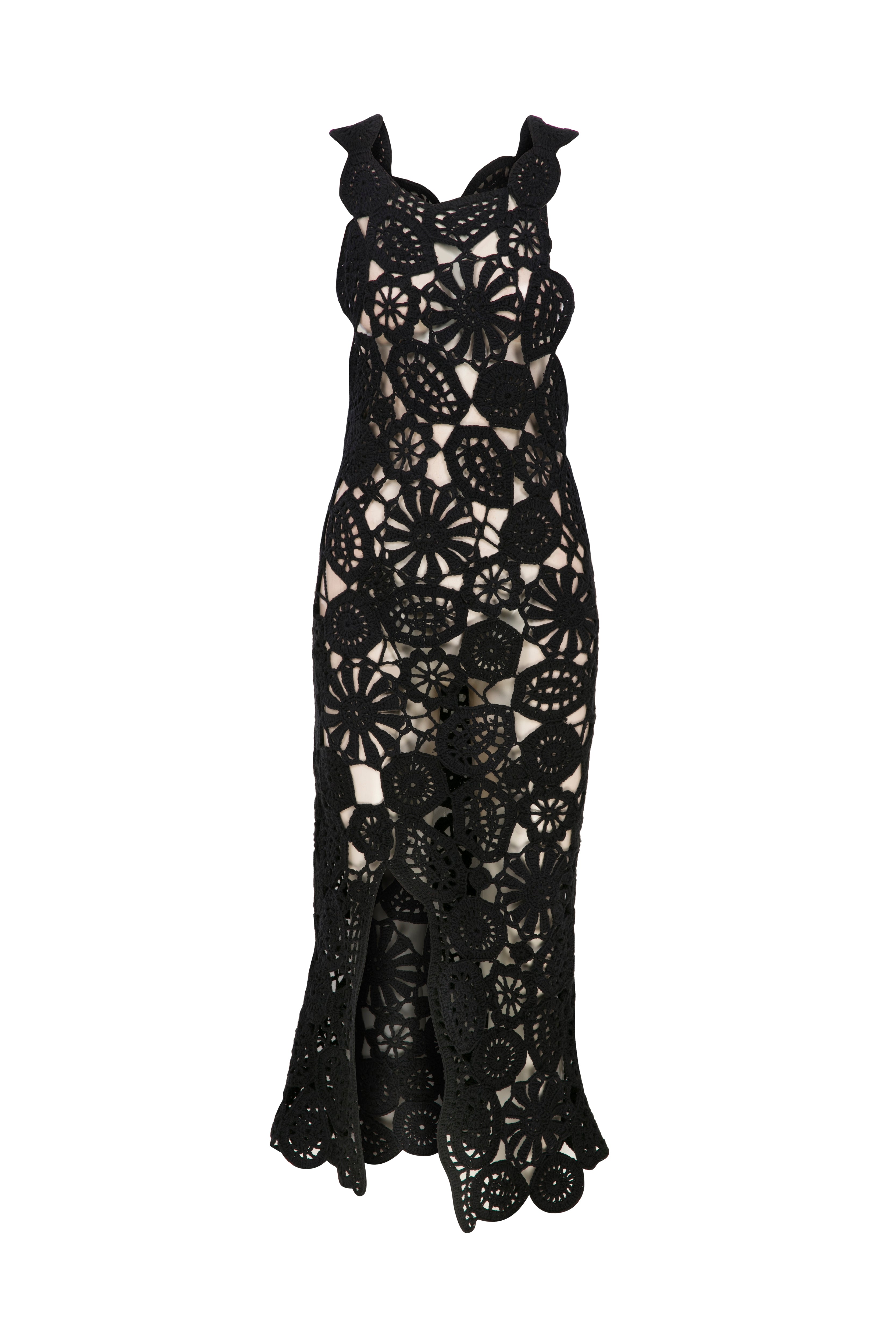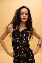 El Yapımı Kroşe Siyah Midi Elbise